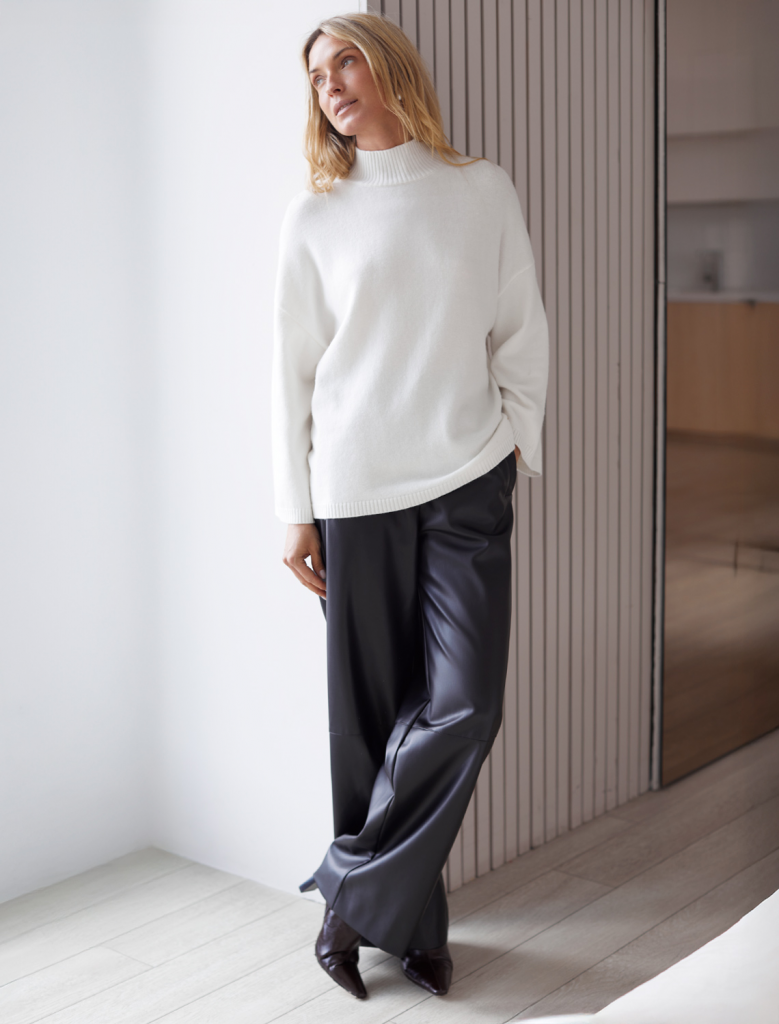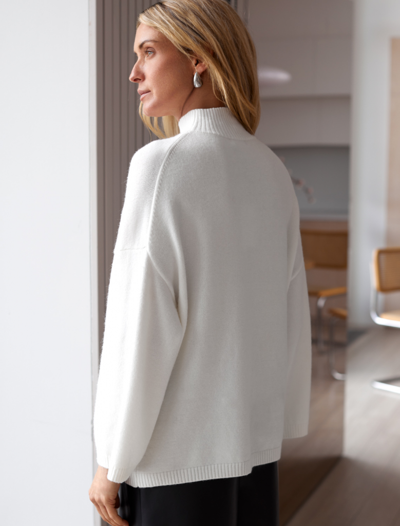 Джемпер выполнен из мягкой пряжи с кашемиром. Фишкой изделия являются свободные рукава на одном уровне с низом, это выгодно подчёркивает силуэт визуально вытягивая его. Мягкая пряжа очень приятная к телу, поддержит комфорт на протяжении всего дня, при этом не перегревая. Сочетается в костюме с брюками D38.013, D38.012 и юбкой D36.016