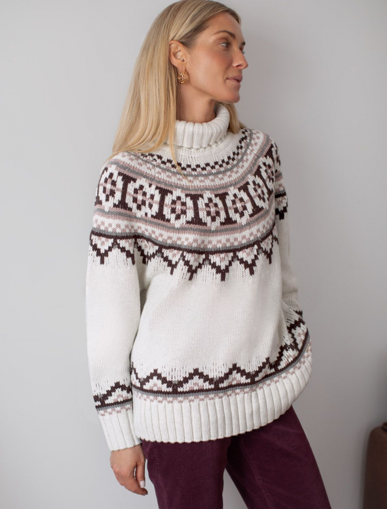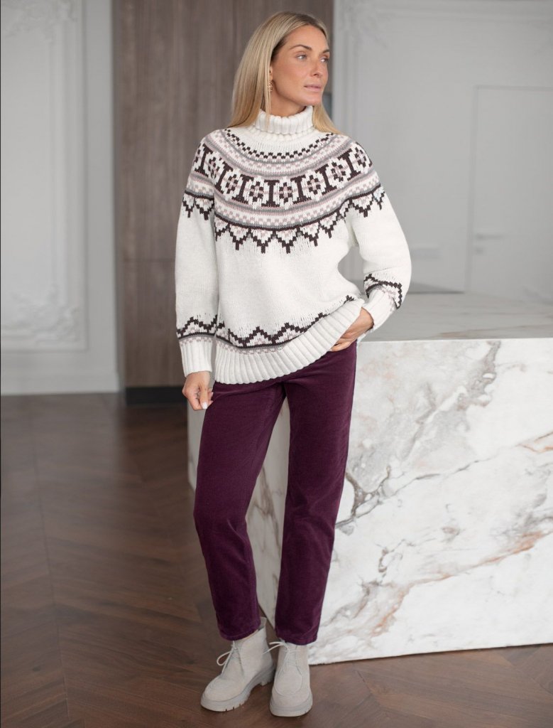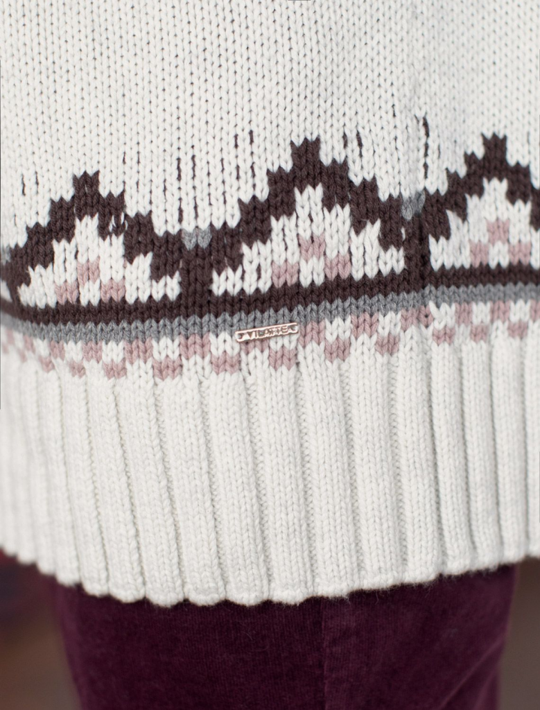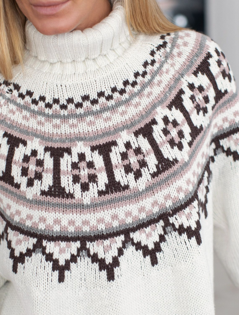 Свитер фактурной вязки выполнен из хлопковой пряжи с добавлением акрила. Уютная модель в скандинавском стиле внесет эстетику зимнего загородного отдыха в любой гардероб. Мягкая пряжа очень приятная к телу хорошо поддерживает тепло при этом не перегревая. Отлично держит форму даже после множества стирок. Свободный силуэт позволяет носить под низ футболки, лонгсливы и топы. Изделие дополнено металлическим логотипом бренда.