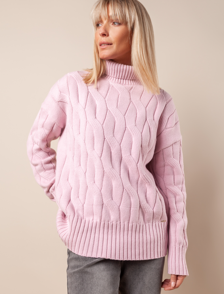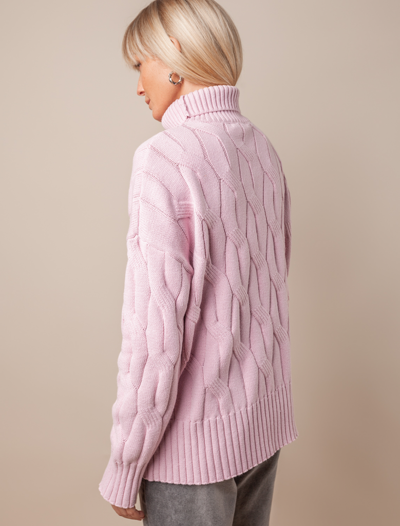 Уютный свитер с крупной вязки с узорами косы выполнен из мягкой хлопковой пряжи с акрилом. Модель абсолютно не колется и очень комфортная в носке даже на голое тело. Отлично согревает при этом не перегревая. Хорошо сочетается с брюками из эко-кожи и джинсами на флике, вельветом.