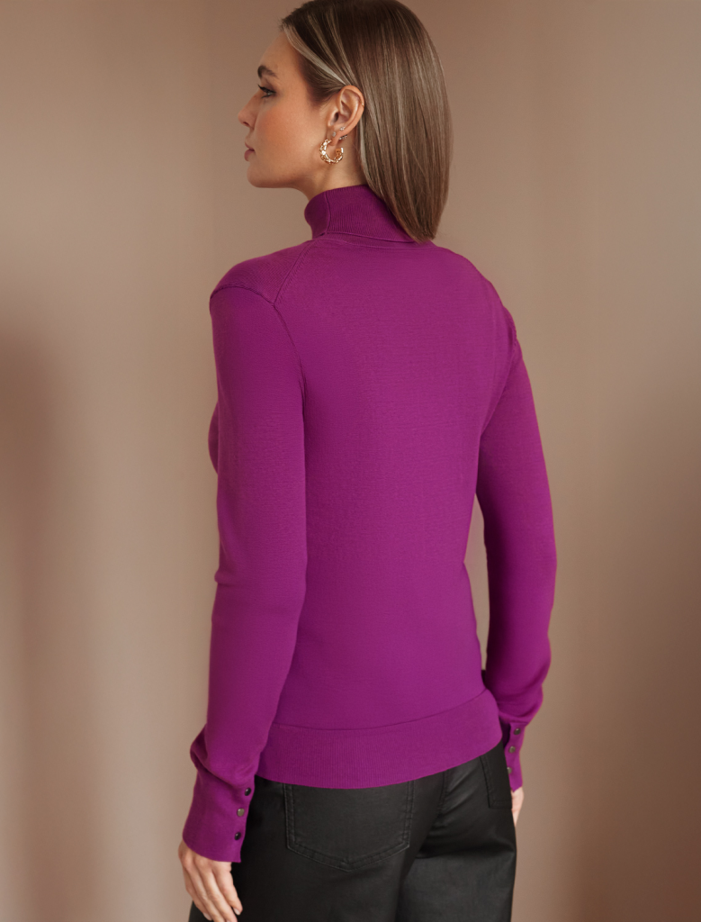 Водолазка тонкой вязки выполнена из хлопка. Лаконичная модель дополнена манжетами с золотистыми пуговицами. Изделие не сковывает движений и подходит для любой фигуры. Мягкая пряжа очень приятная к телу не колется и сохраняет тепло при этом не перегревая.