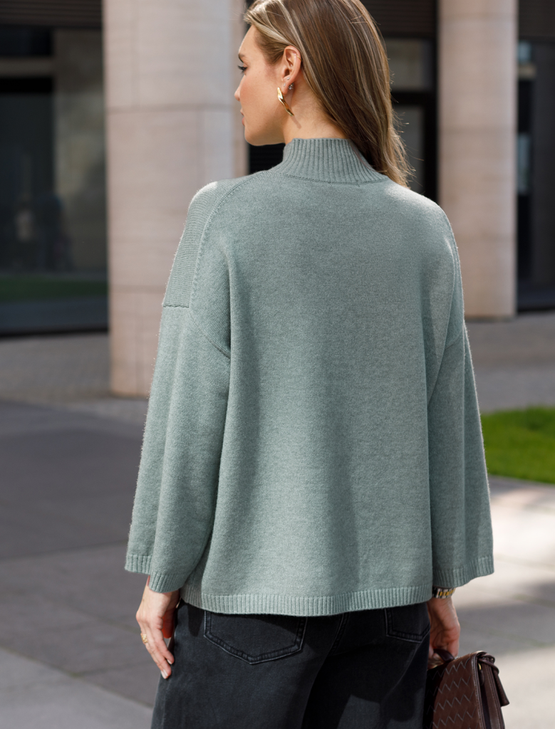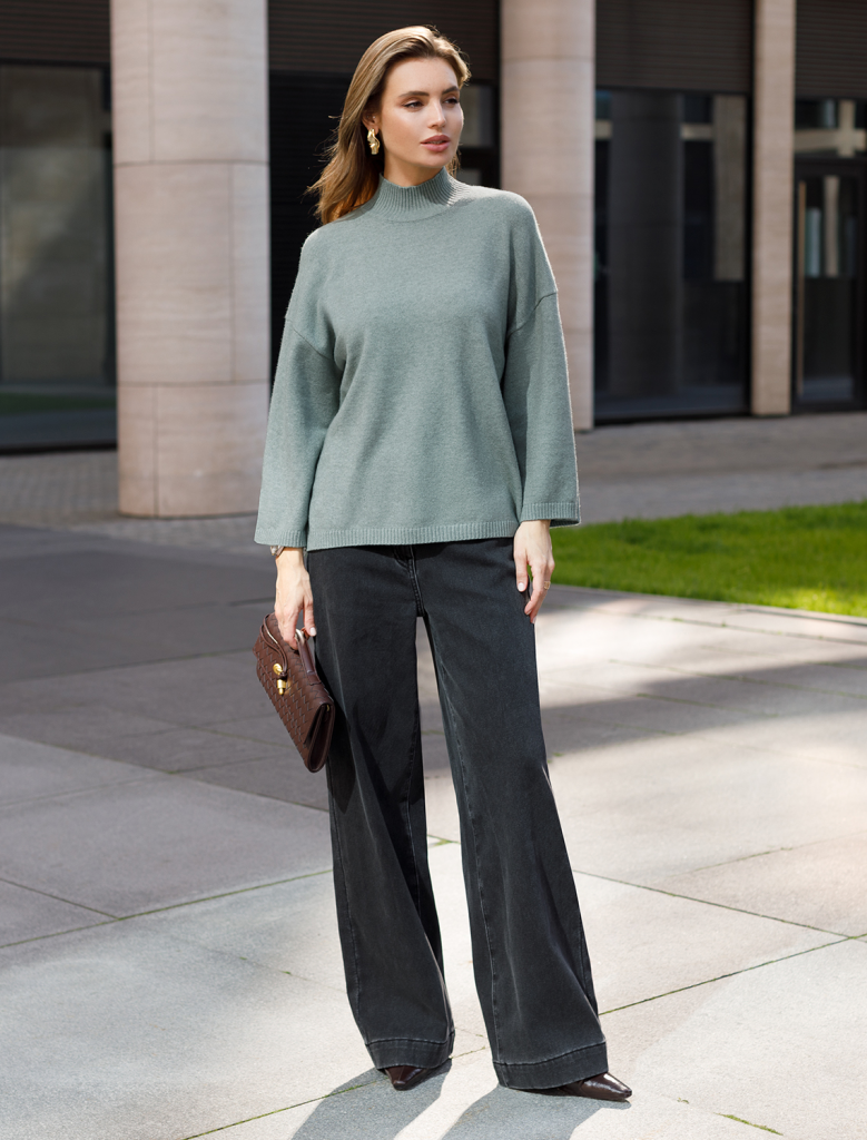 Джемпер выполнен из мягкой пряжи с кашемиром. Фишкой изделия являются свободные рукава на одном уровне с низом, это выгодно подчёркивает силуэт визуально вытягивая его. Мягкая пряжа очень приятная к телу, поддержит комфорт на протяжении всего дня, при этом не перегревая. Сочетается в костюме с брюками D38.013, D38.012 и юбкой D36.016