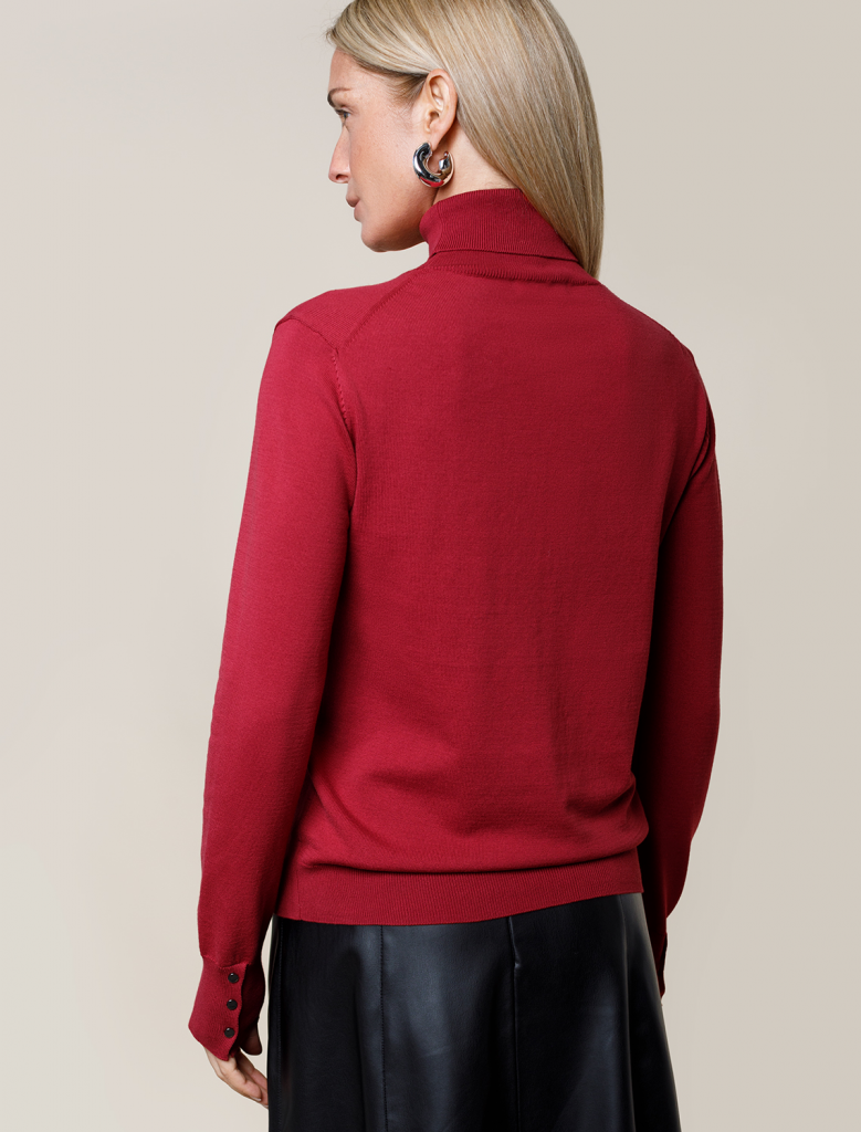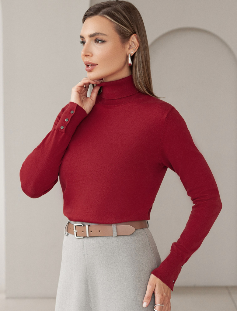 Водолазка тонкой вязки выполнена из хлопка. Лаконичная модель дополнена манжетами с золотистыми пуговицами. Изделие не сковывает движений и подходит для любой фигуры. Мягкая пряжа очень приятная к телу не колется и сохраняет тепло при этом не перегревая.