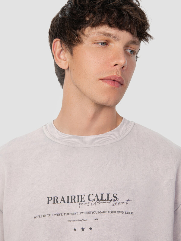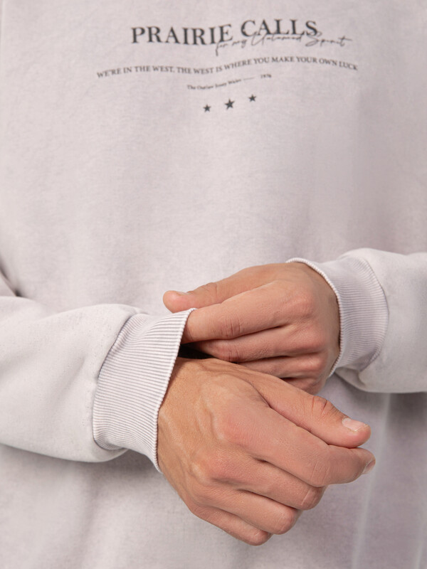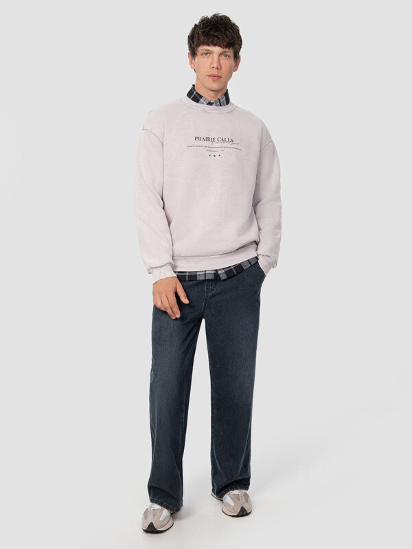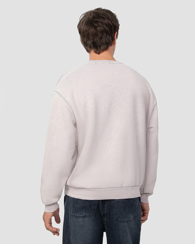 Теплый мужской свитшот из трикотажного футера с нежным подчесом. Силуэт прямой, вырез классический – круглый, не глубокий. Рукава длинные, на манжетах из рибаны. Спущенная линия плеча дарит свободу движений. Пояс, проходящий по нижнему срезу, также сделан из рибаны. Отличный свитшот для городских образов.