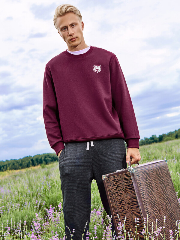 Толстовка свободная, прямая. Горловина округлой формы обработна обтачкой из рибаны. Рукава втачные длинные. Линия плеча слегка спущена. По окату рукава и плечевым швам отделочные