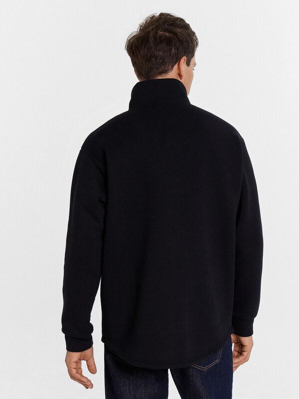 Горловина округлой формы с воротником стойкой из основного полотна. Шов втачивания горловины закрыт тесьмой хб.