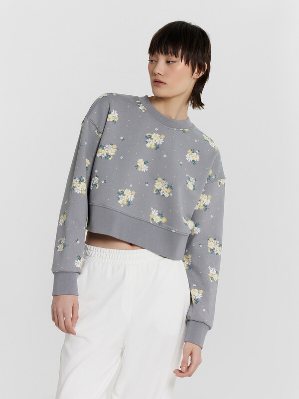 Свитшот цветы на сером