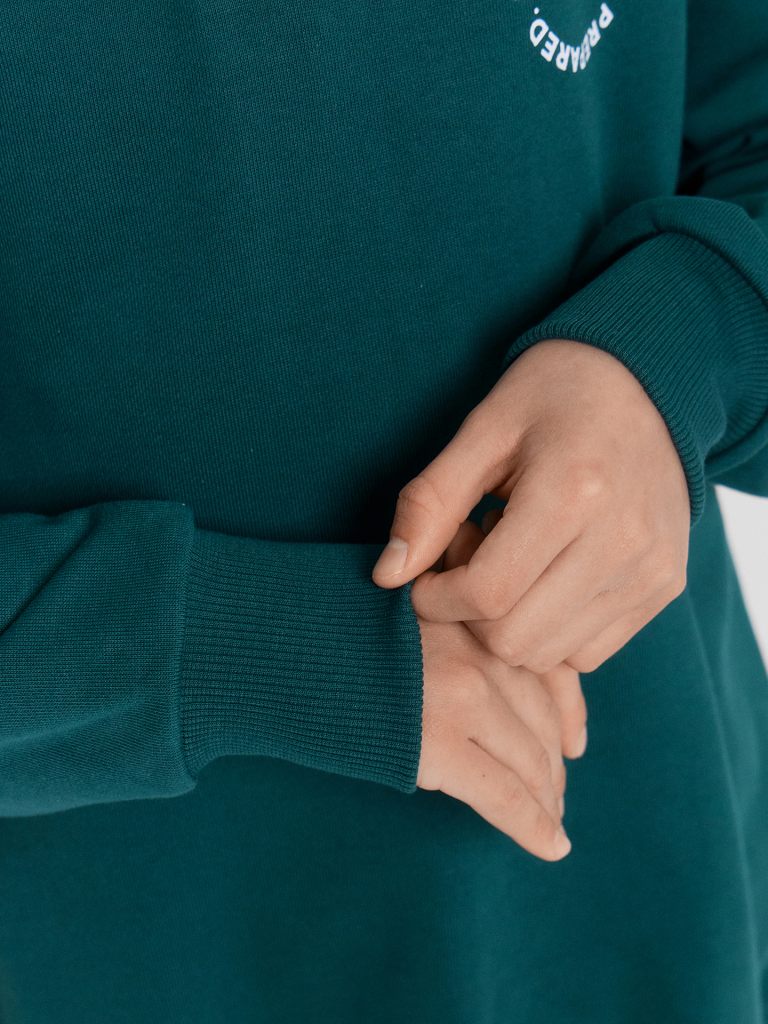 Рукава втачные длинные, с отрезными манжетами из рибаны. Плечо слегка спущено.