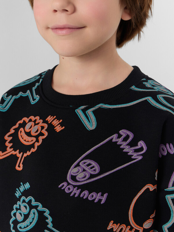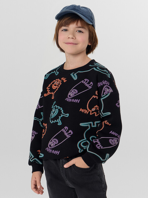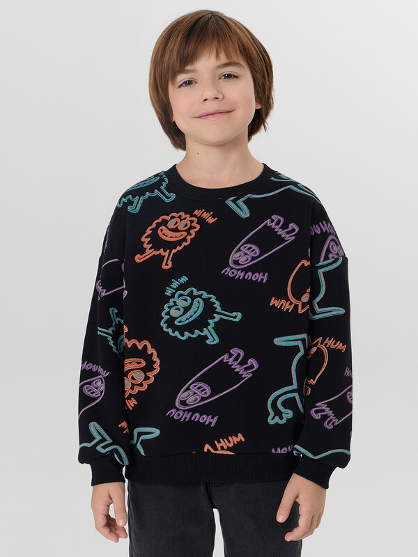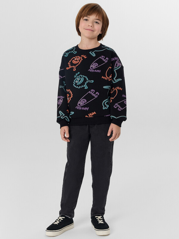 Свитшот для мальчика с мягким начесом внутри — это идеальная база для повседневной носки. Он не только создаёт ощущение уюта и прекрасно сохраняет тепло в прохладные дни, но и обеспечивает полную свободу движений благодаря свободному крою и спущенной линии плеча.