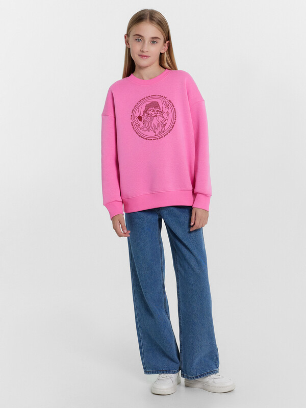 Этот праздничный джемпер для девочек из трикотажного футера с теплым подчесом станет незаменимой вещью в гардеробе каждой девочки. Горловина круглой формы и длинные рукава со спущенной линией плеча обеспечивают комфорт и стильный вид. Красивая детская модель идеально подходит для повседневных нарядов. Приятный дизайн джемпера точно порадует вашу маленькую принцессу. Рекомендуем для создания уютного образа!