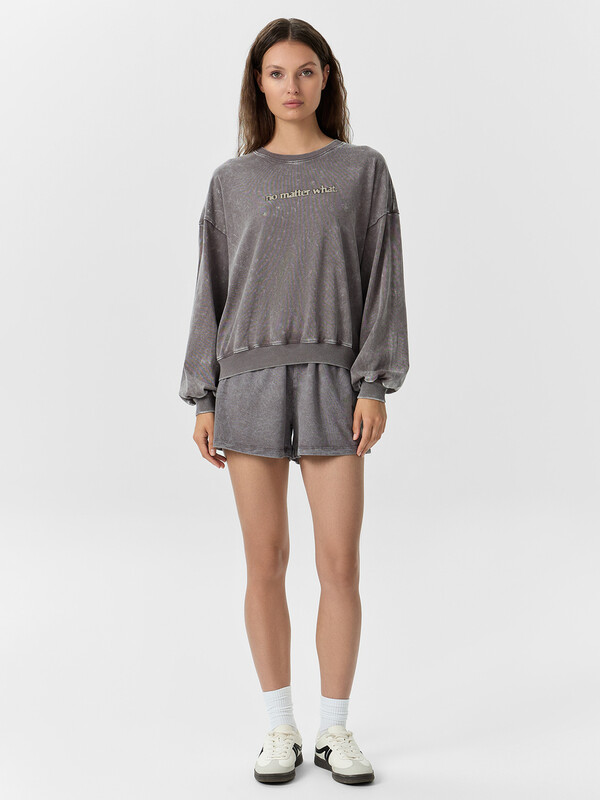 Женский свитшот свободного силуэта — идеальное сочетание простоты, удобства и актуального дизайна. Модель длиной до бедер прекрасно садится по фигуре, не стесняет движений и создает расслабленный, уютный образ. Круглая горловина аккуратно обработана рибаной, обеспечивая мягкое прилегание и долговечность в носке. Спущенная линия плеч и длинные рукава с отрезными манжетами из рибаны подчеркивают свободный крой и добавляют нотку непринужденности. Отрезной пояс из рибаны по низу джемпера гармонично завершает силуэт, мягко фиксируя изделие на бедрах. Натуральный хлопок, из которого выполнена модель, дарит комфорт и воздухопроницаемость, делая свитшот идеальным выбором для любого времени года. Эта базовая вещь легко впишется в повседневный гардероб и будет прекрасно смотреться в дуэте с шортами из той же коллекции — создавая стильный и продуманный комплект для дома, прогулок или активного отдыха.