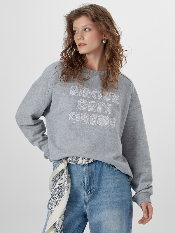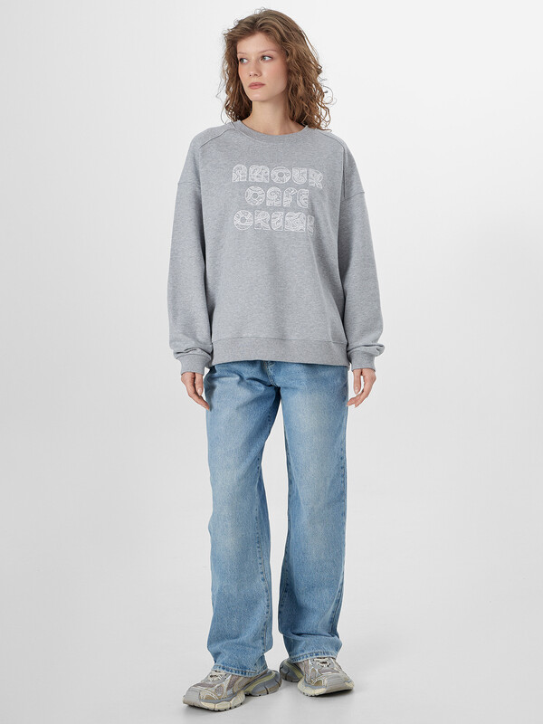 Серый женский свитшот с надписью "Любовь и кофе со сливками" — это стиль и комфорт для вашего повседневного гардероба. Свободный силуэт со спущенным плечом и углубленной проймой обеспечивает полную свободу движений, а мягкий хлопок дарит нежность коже и позволяет ей дышать.
