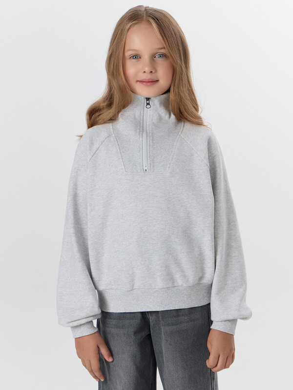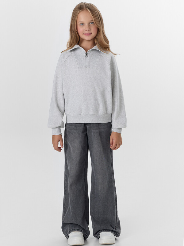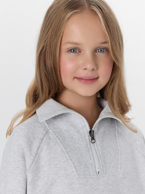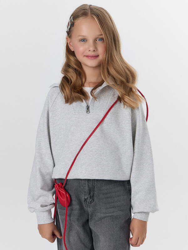 Свитшот для девочек с воротником — это уютная и стильная модель для повседневной носки. Свободный силуэт и спущенная линия плеча обеспечивают полную свободу движений, а длинные рукава реглан мягко облегают руки. Перед и спинка выполнены цельными, что исключает лишние швы и повышает комфорт.