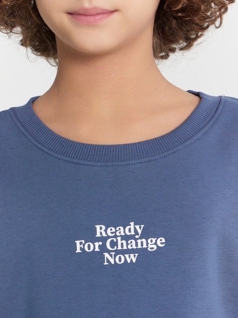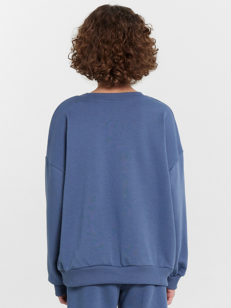 Свитшот свободного силуэта. Рукава длинные, втачные. Линия плеча спущена. Перед и спинка