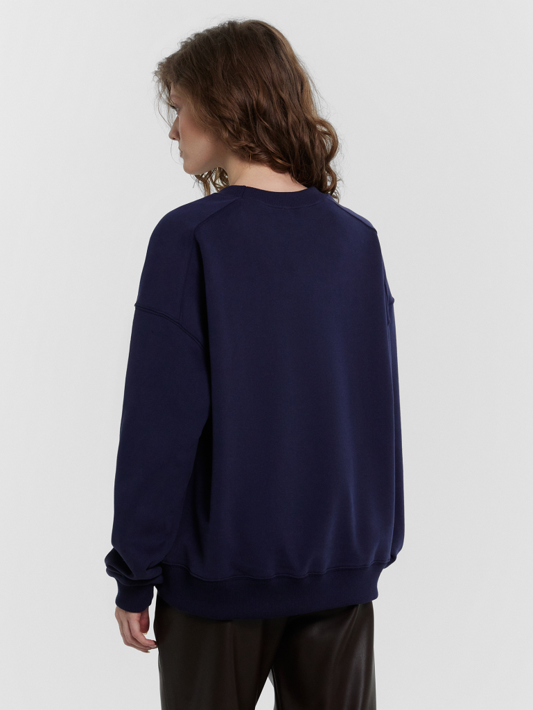 Женский свитшот свободного силуэта станет отличным дополнением для стильных и комфортных образов. Круглая горловина придает ему классический вид, а длинные рукава с эластичными манжетами из рибаны обеспечивают дополнительное удобство и удерживают тепло. Спущенная линия плеча и углубленная пройма создают расслабленный, стильный силуэт, который идеально подходит для повседневного ношения. Изготовленный из футера без подчеса, этот свитшот отличается мягкостью и долговечностью. Материал обеспечивает комфорт на протяжении всего дня, позволяя коже дышать и при этом сохраняет тепло. Этот свитшот легко сочетается с различными элементами гардероба, делая его универсальным выбором для любого случая.