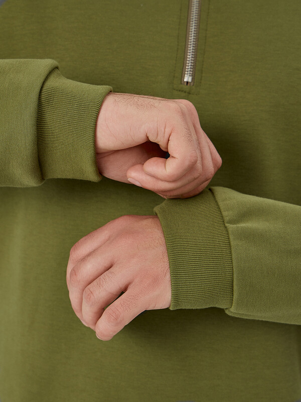 Длинные рукава дополнены эластичными манжетами, которые хорошо фиксируются на запястьях. Низ также оформлен эластичной резинкой. Внутренние швы обработаны хлопковой тесьмой, что предотвращает натирание и повышает долговечность вещи. Эта модель идеально подходит для повседневной носки и сочетается с любым денимом или брюками.