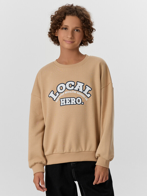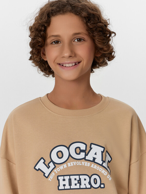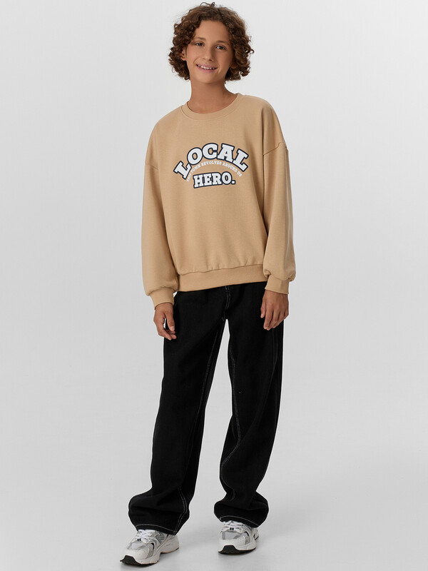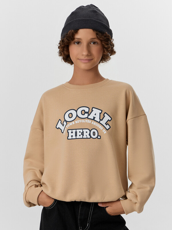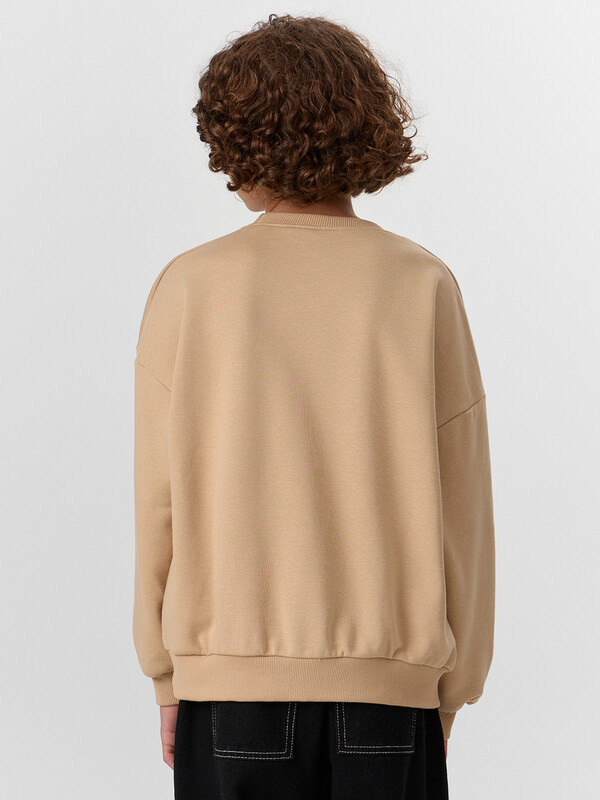 Свитшот свободного силуэта. Рукава длинные, втачные. Линия плеча спущена. Перед и спинка