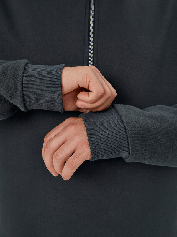 Удобная центральная застежка на молнию от груди до горла позволяет легко надевать изделие и регулировать теплообмен. Манжеты на рукавах и пояс по низу выполнены из эластичной рибаны, что помогает сохранять тепло и обеспечивает аккуратную посадку по фигуре. Прочный материал футер с двухсторонней отделкой обладает высокой износостойкостью и мягкостью. Сбалансированный состав с преобладанием хлопка гарантирует комфорт при длительной носке, а добавление полиэстера повышает устойчивость к деформации. Утепленная модель станет надежным выбором для повседневной носки в прохладную погоду.