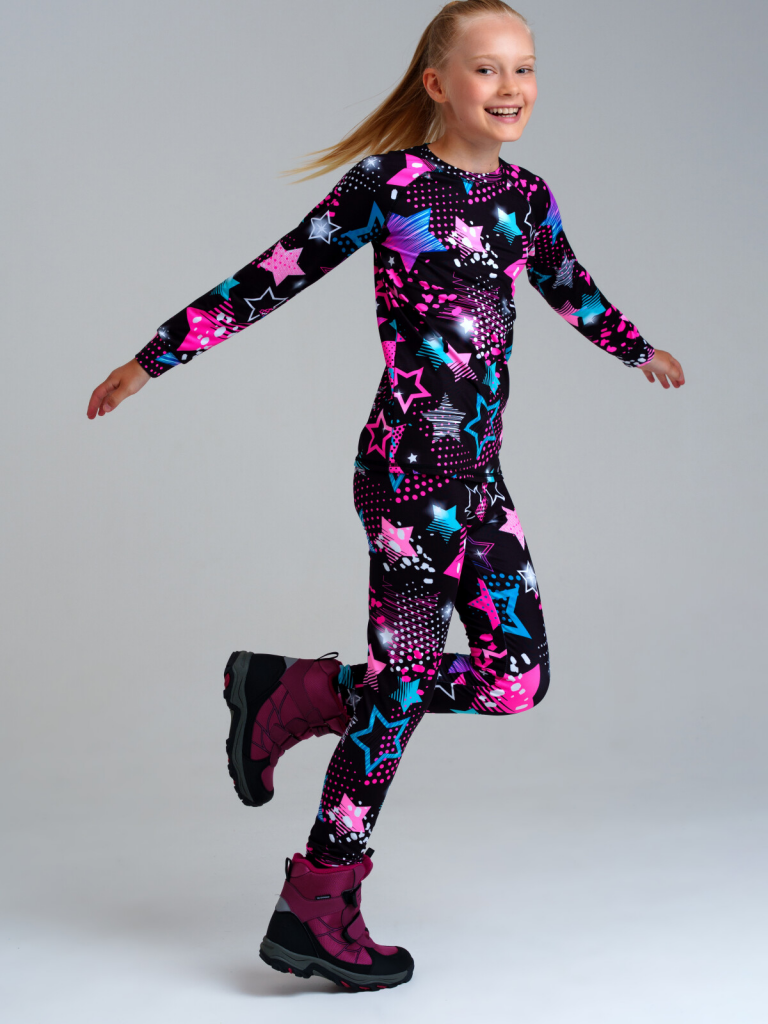 Термобелье линии NORD для девочки подростка - это удобная и функциональная одежда для зимнего сезона, предназначенная для активного отдыха и спорта. Плотность: 220гр/м2, микроначес. Лонгслив и кальсоны (брюки) из термо материала с микроначесом идеально подходят под зимний мембранный костюм или комбинезон, в качестве базового первого слоя в трехслойной концепции одежды для зимы. Его основная функция отводить влагу от тела, всегда оставаясь сухим. Терморегуляция обеспечивается за счет сложного смесового состава нитей и их особого запатентованного плетения. Детское яркое термобелье отличается стильным дизайном и комфортным кроем, который не сковывает движений ребенка. К тому же, оно быстро сохнет и легко стирается, что делает его идеальным для повседневного использования в холодное время года.