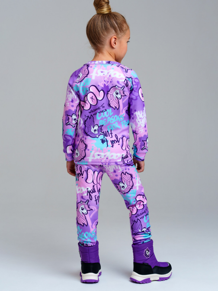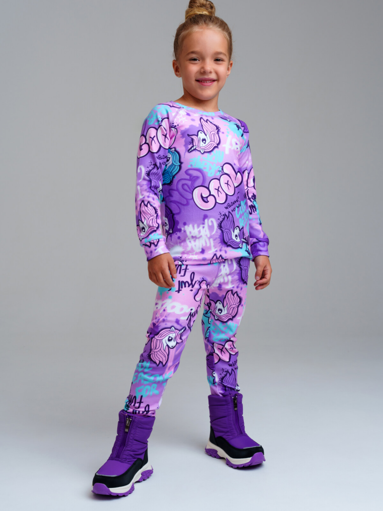 Термокомплект трикот. для девочек: фуфайка (футболка) с длин. рук, брюки для эпизод. использования разноцветный