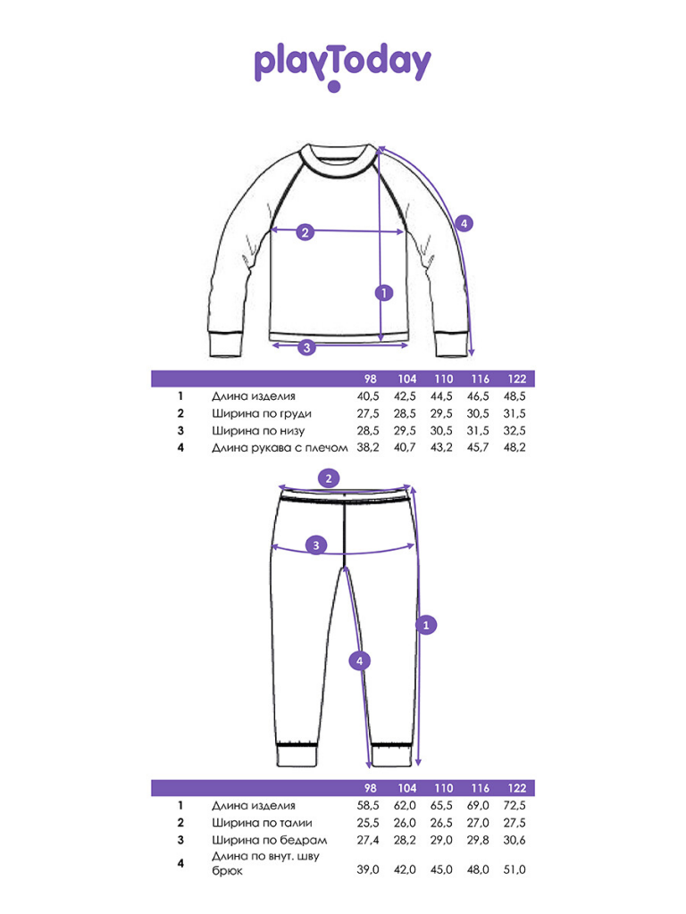| Рост, см | 98 | 104 | 110 | 116 | 122 | 128 | 134 | 140 | 146 | 152 | 158 | 164 | 170 |