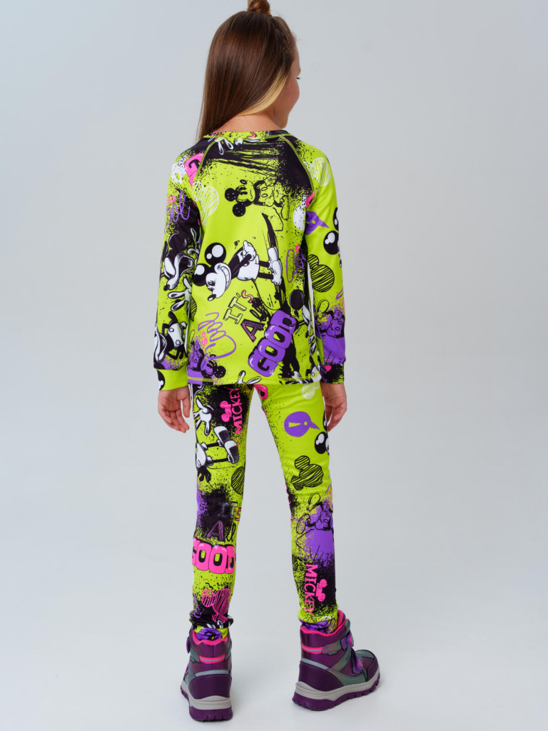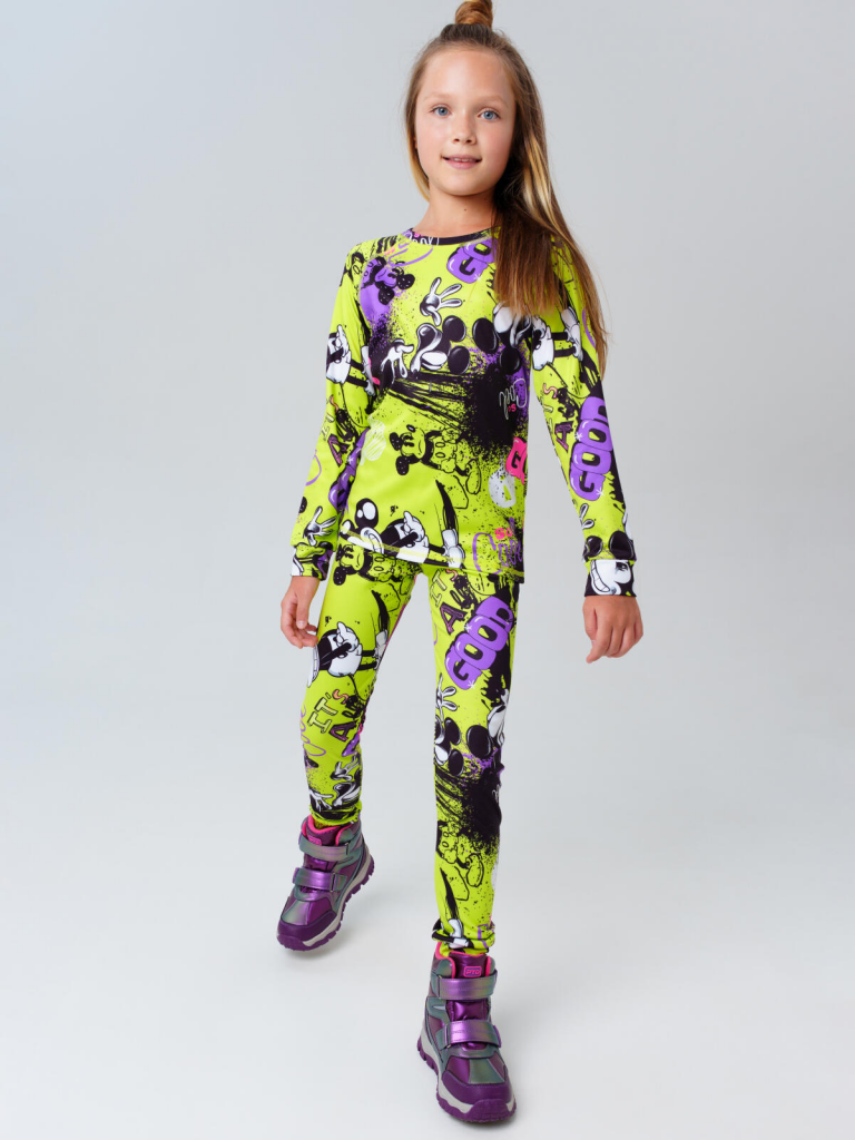 Термобельё Микки Маус для девочки подростка от PlayToday — идеальный первый слой для холодного сезона. Комплект из кофты и брюк с начёсом сохраняет тепло тела, эффективно отводит влагу и быстро сохнет. Мягкий эластичный материал не сковывает движений и обеспечивает комфортную посадку, а плоские швы не натирают даже при длительной носке. Благодаря удобному крою и нежной к телу ткани, термобельё отлично подходит как для прогулок на свежем воздухе, так и для активных занятий спортом.Преимущества модели:+ плотность 240гр/м2, начес+ начёс с внутренней стороны — дополнительное тепло и мягкость+ отвод влаги и терморегуляция — сохраняет комфорт при любой активности+ эластичная ткань — не сковывает движений+ плоские швы — отсутствие натирания и максимальный комфорт+ комфортная посадка — идеально сидит по фигуреКогда и как носить:Термобельё подростковое от PlayToday — это must-have для осени и зимы. Используйте как базовый слой под одежду в холодную погоду: на прогулки, в поездки, в школу или на спорт. Оно подойдёт для активных игр на улице, лыжных тренировок, катания на санках или просто длительных зимних прогулок. Благодаря быстрому отводу влаги и теплоизоляции ребёнку будет комфортно даже при смене активности.Советы по стилю:Термобельё отлично сочетается с утеплёнными мембранными комплектами и комбинезонами, зимними брюками и куртками PlayToday. Для создания уютного и функционального образа добавьте флисовую толстовку или жилет. Можно использовать и как пижаму для холодных ночей — мягкий начёс делает комплект особенно приятным к телу.Размеры: 128-152 для девочек подростков и школьниц от 8 до 14 лет.Сделайте холодное время года тёплым и комфортным для вашего ребёнка — с термобельём от PlayToday ничто не помешает активным зимним приключениям!
