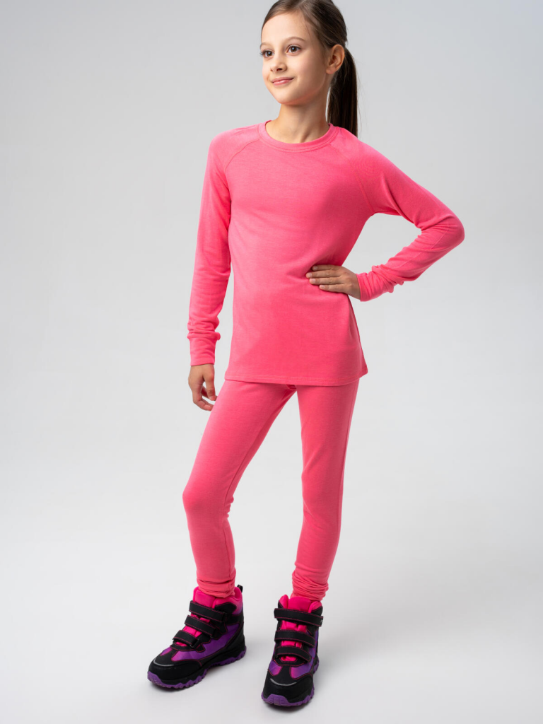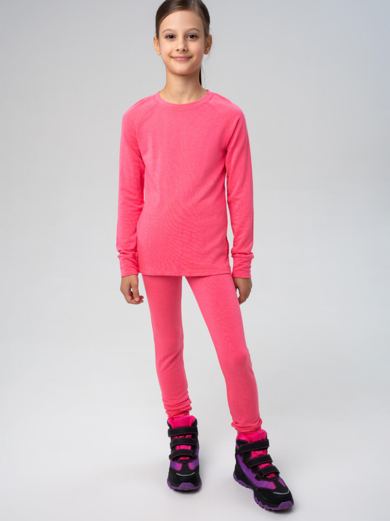 Термокомплект трикот. для девочек: фуфайка (футболка) с длин. рук, брюки для эпизод. использования розовый неоновый