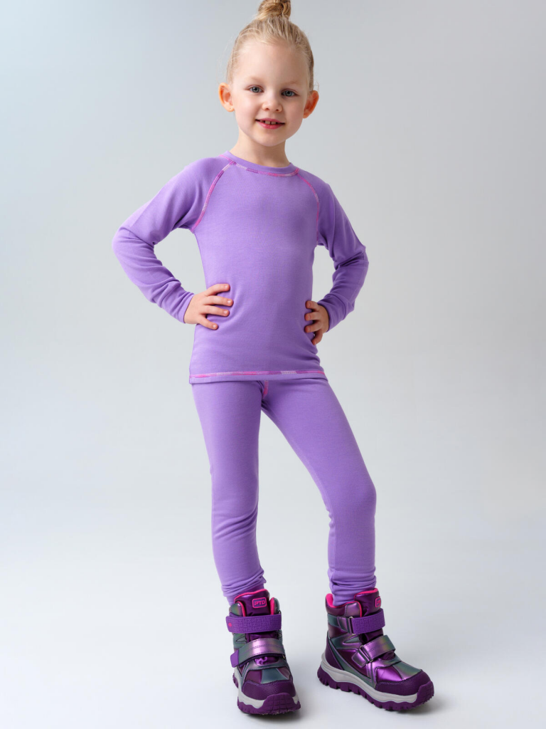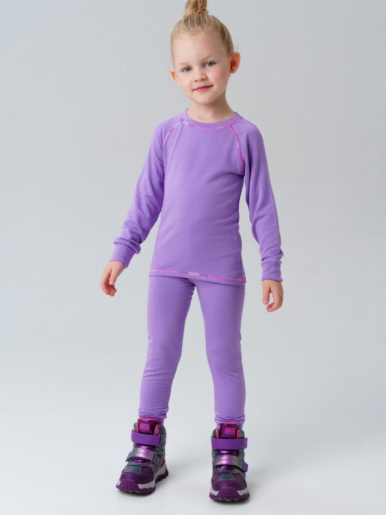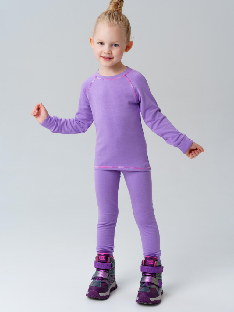 Термокомплект трикот. для девочек: фуфайка (футболка) с длин. рук, брюки для эпизод. использования сиреневый