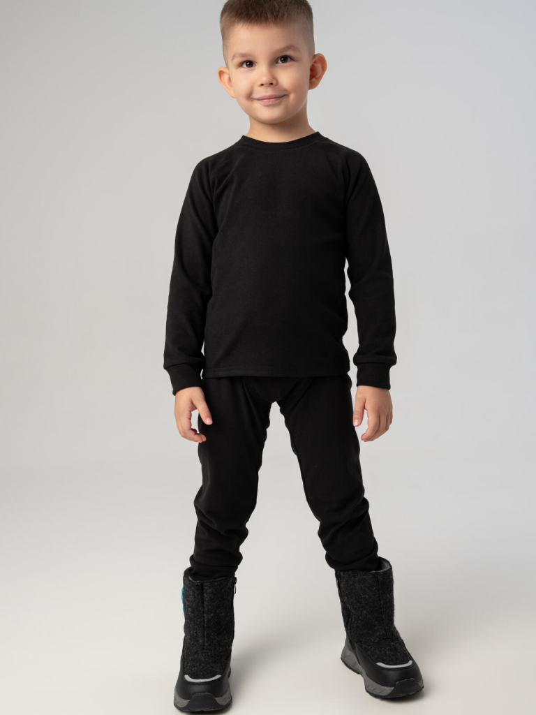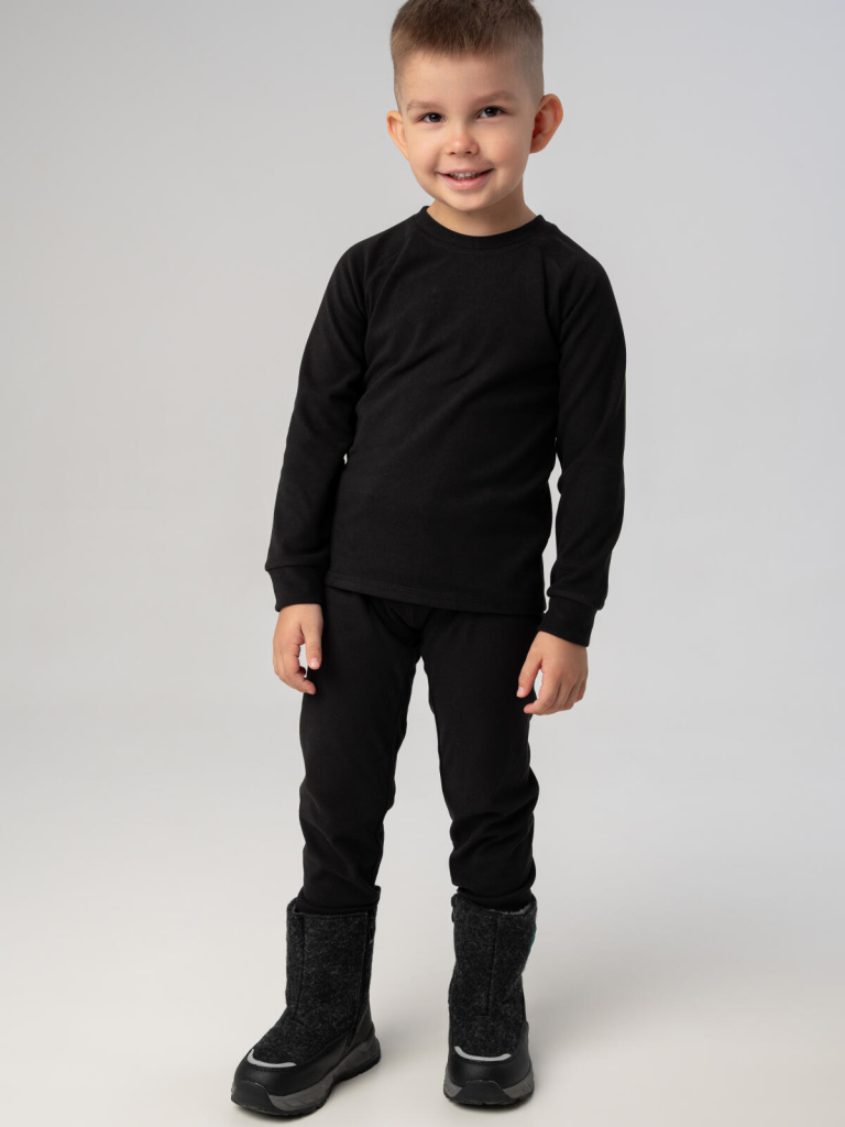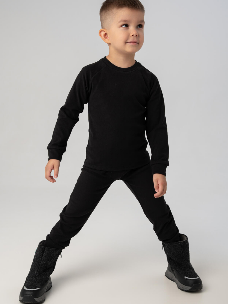 Термокомплект трикот. для мальчиков: фуфайка (футболка) с длин. рук, брюки для эпизод. использования черный