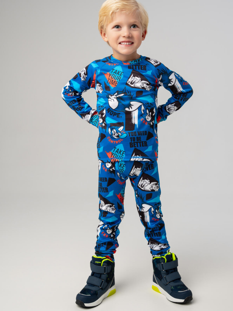 Термокомплект трикот. для мальчиков: фуфайка (футболка) с длин. рук, брюки для эпизод. использования разноцветный