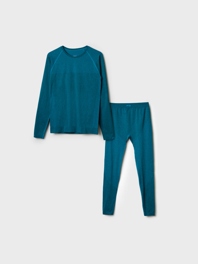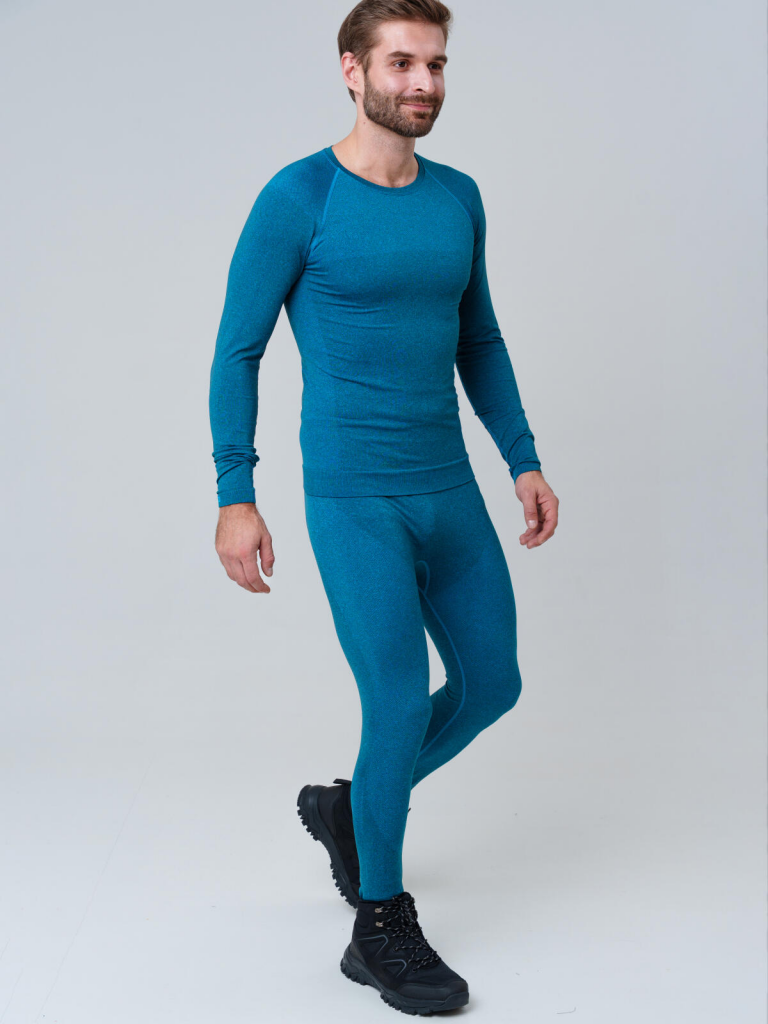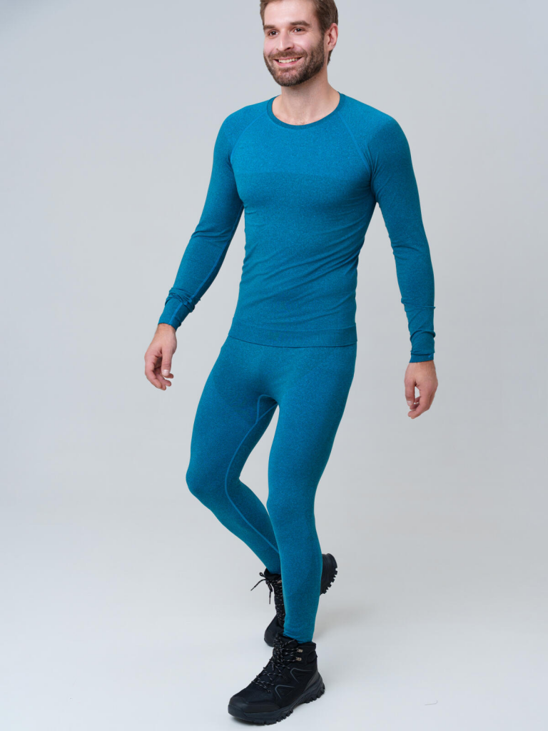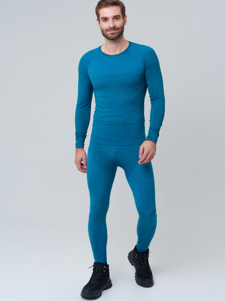 Термокомплект трикот. для мужчин: фуфайка (футболка) с длин. рук, брюки для эпизод. использования черный,бирюзовый