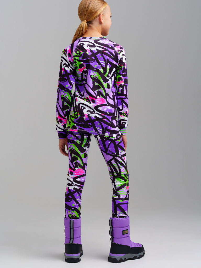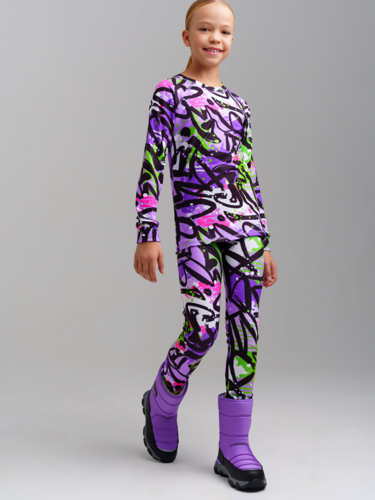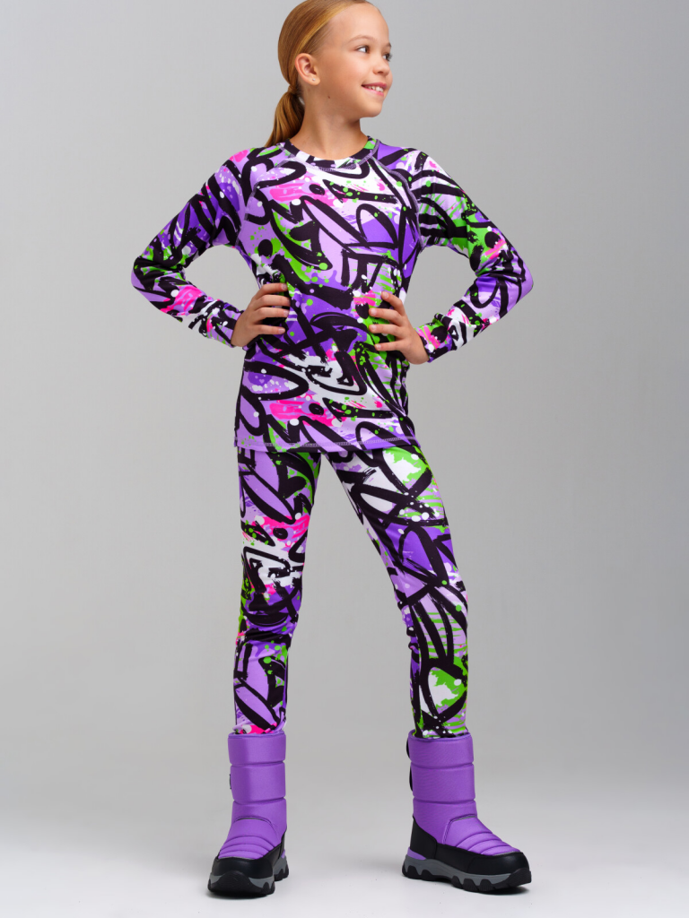 Термобелье линии NORD для девочки подростка - это удобная и функциональная одежда для зимнего сезона, предназначенная для активного отдыха и спорта. Лонгслив и кальсоны (брюки) из термо материала с микроначесом идеально подходят под зимний мембранный костюм или комбинезон, в качестве базового первого слоя в трехслойной концепции одежды для зимы. Его основная функция отводить влагу от тела, всегда оставаясь сухим. Терморегуляция обеспечивается за счет сложного смесового состава нитей и их особого запатентованного плетения. Детское яркое термобелье отличается стильным дизайном и комфортным кроем, который не сковывает движений ребенка. К тому же, оно быстро сохнет и легко стирается, что делает его идеальным для повседневного использования в холодное время года.