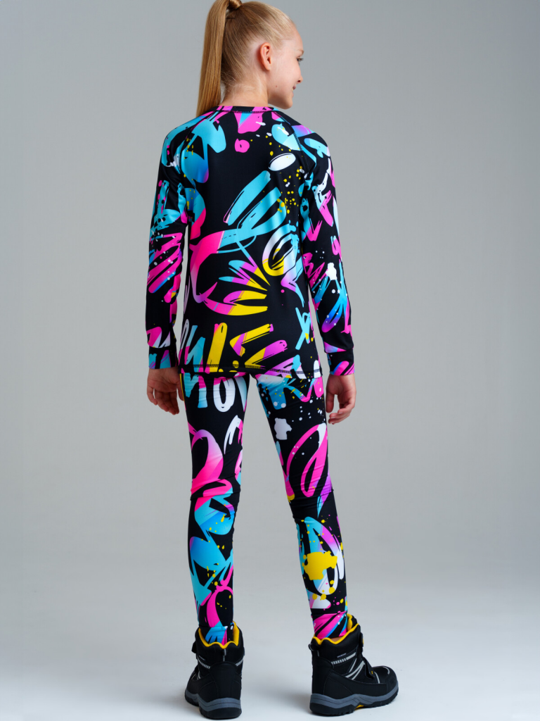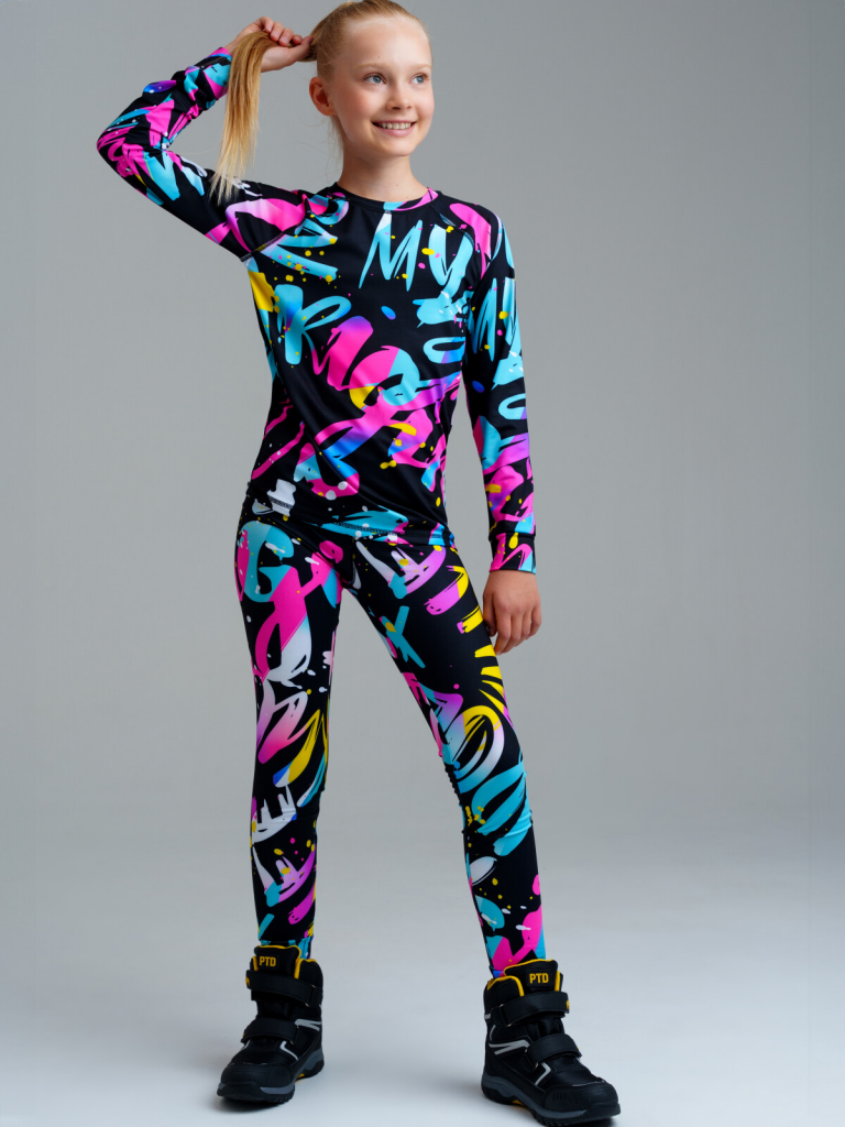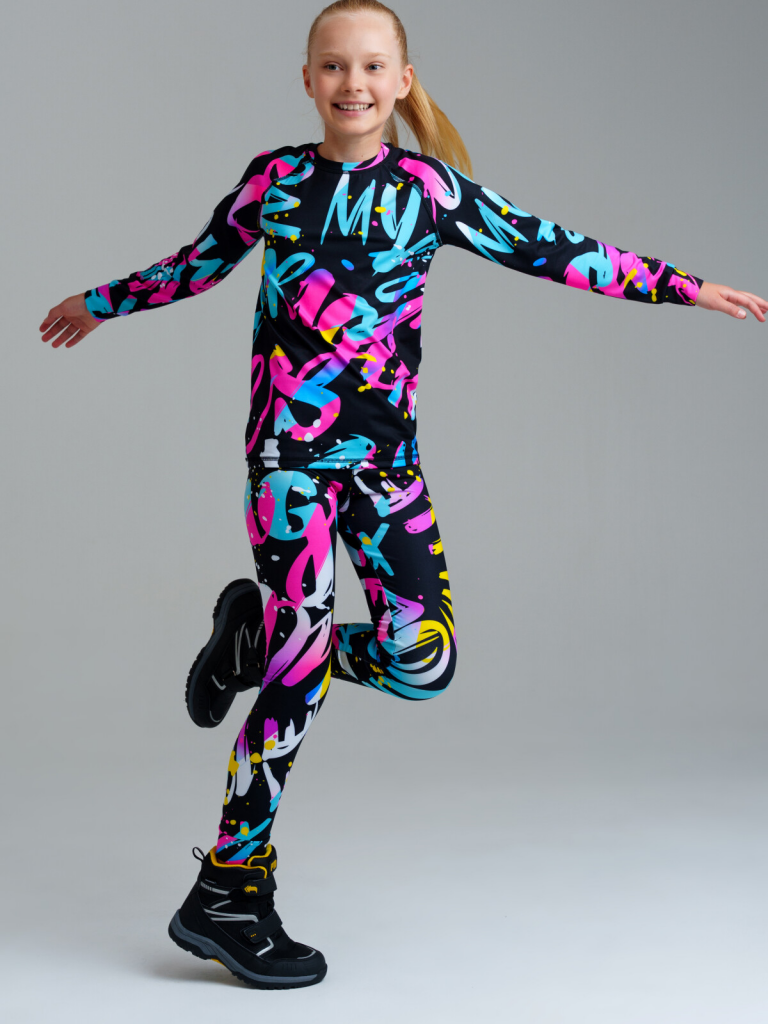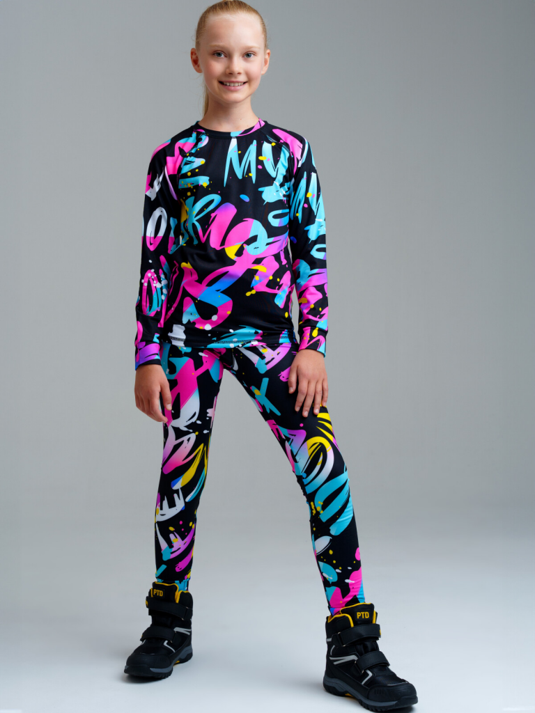 Термобелье линии NORD для девочки подростка - это удобная и функциональная одежда для зимнего сезона, предназначенная для активного отдыха и спорта. Лонгслив и кальсоны (брюки) из термо материала с микроначесом идеально подходят под зимний мембранный костюм или комбинезон, в качестве базового первого слоя в трехслойной концепции одежды для зимы. Его основная функция отводить влагу от тела, всегда оставаясь сухим. Терморегуляция обеспечивается за счет сложного смесового состава нитей и их особого запатентованного плетения. Детское яркое термобелье отличается стильным дизайном и комфортным кроем, который не сковывает движений ребенка. К тому же, оно быстро сохнет и легко стирается, что делает его идеальным для повседневного использования в холодное время года.