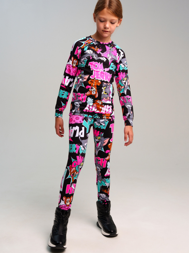 > Термокомплект трикотажный для девочек: брюки, толстовка для эпизодического использования разноцветный