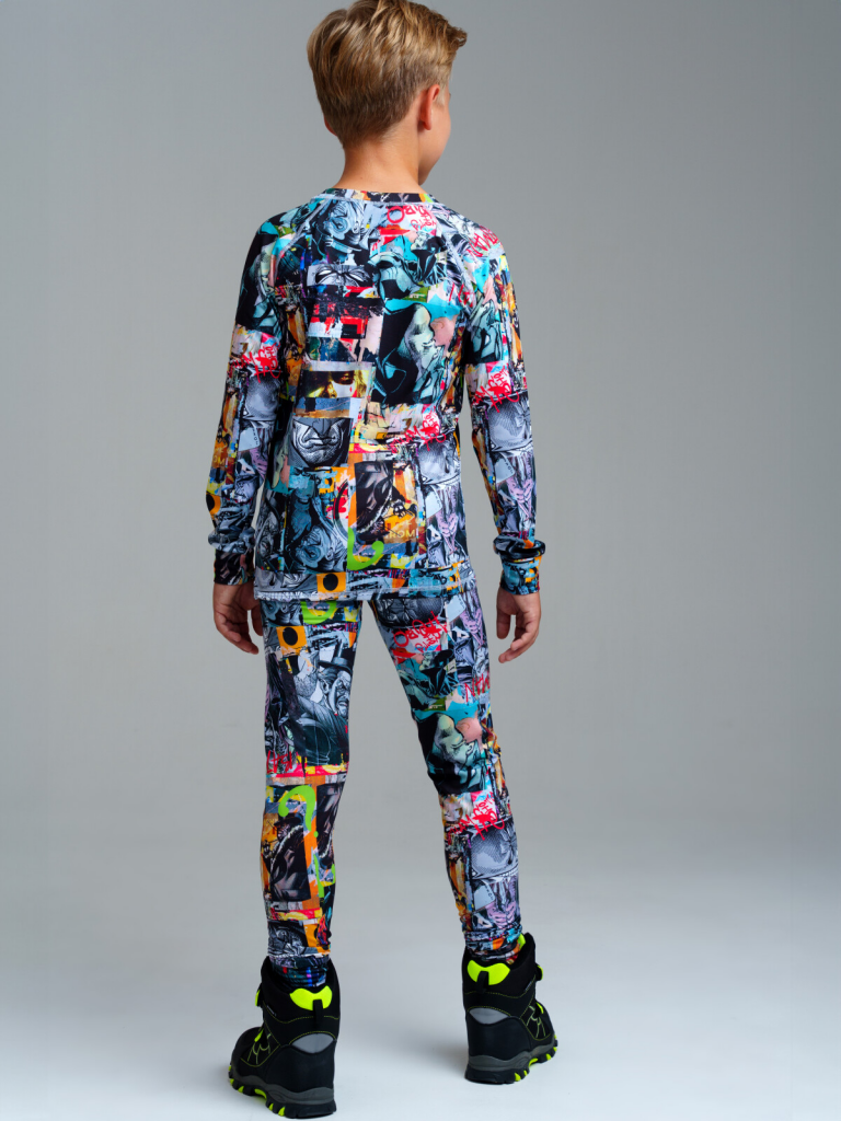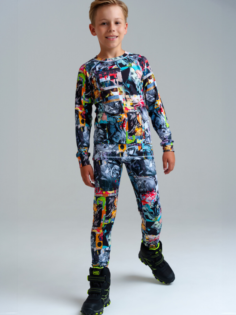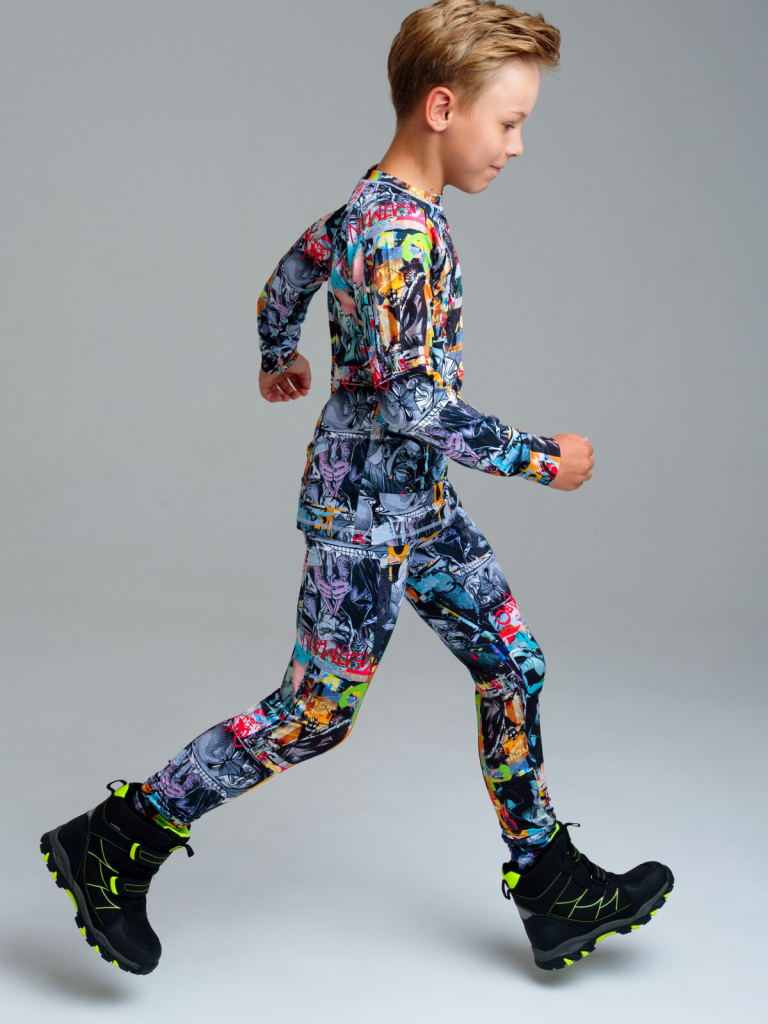 Термобелье линии NORD для мальчика подростка - это удобная и функциональная одежда для зимнего сезона, предназначенная для активного отдыха и спорта. Лонгслив и кальсоны (брюки) из термо материала с микроначесом идеально подходят под зимний мембранный костюм или комбинезон, в качестве базового первого слоя в трехслойной концепции одежды для зимы. Его основная функция отводить влагу от тела, всегда оставаясь сухим. Терморегуляция обеспечивается за счет сложного смесового состава нитей и их особого запатентованного плетения. Детское яркое термобелье отличается стильным дизайном и комфортным кроем, который не сковывает движений ребенка. К тому же, оно быстро сохнет и легко стирается, что делает его идеальным для повседневного использования в холодное время года.