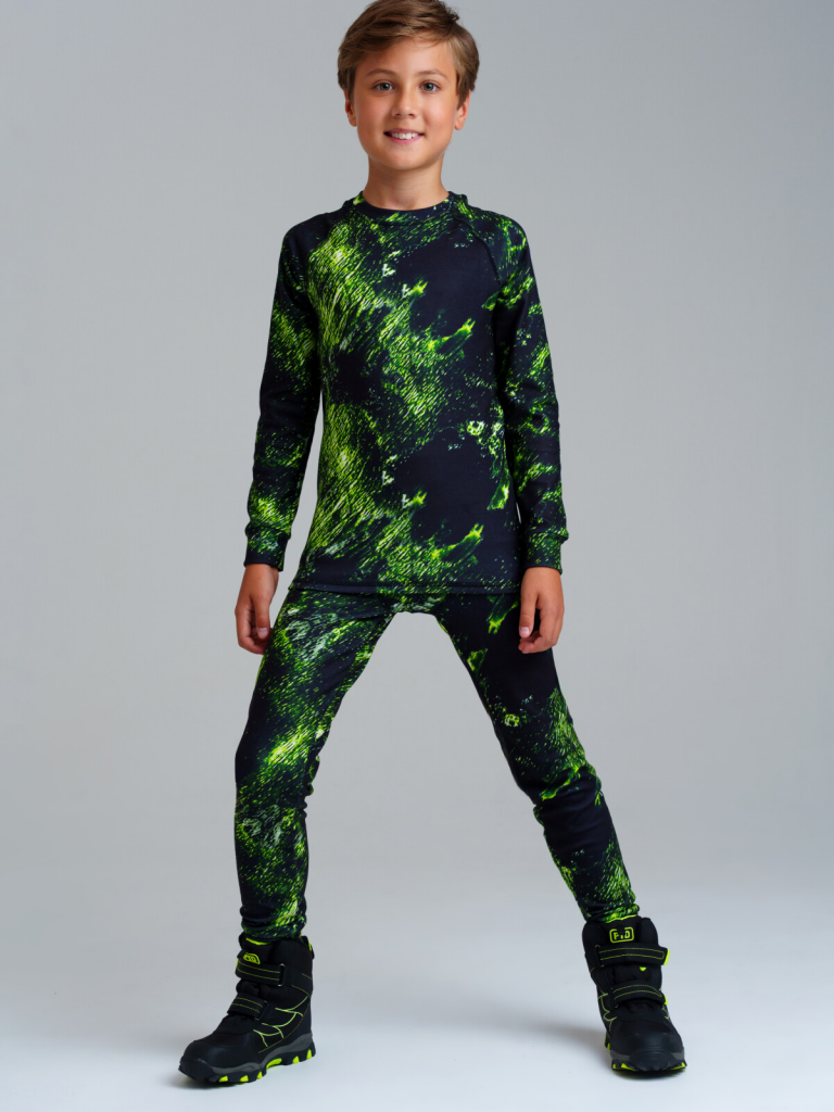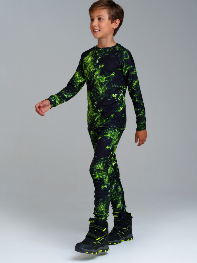 Термобелье линии NORD для мальчика подростка - это удобная и функциональная одежда для зимнего сезона, предназначенная для активного отдыха и спорта. Лонгслив и кальсоны (брюки) из термо материала с микроначесом идеально подходят под зимний мембранный костюм или комбинезон, в качестве базового первого слоя в трехслойной концепции одежды для зимы. Его основная функция отводить влагу от тела, всегда оставаясь сухим. Терморегуляция обеспечивается за счет сложного смесового состава нитей и их особого запатентованного плетения. Детское яркое термобелье отличается стильным дизайном и комфортным кроем, который не сковывает движений ребенка. К тому же, оно быстро сохнет и легко стирается, что делает его идеальным для повседневного использования в холодное время года.