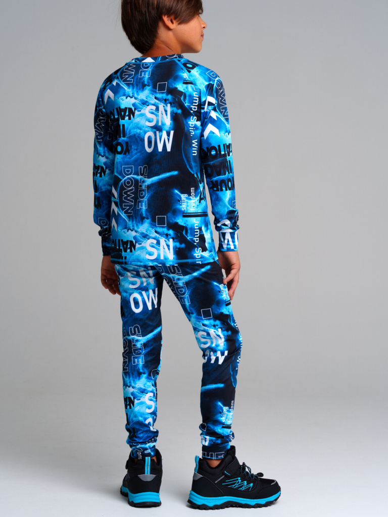 > Термокомплект трикотажный для мальчиков: брюки, толстовка для эпизодического использования черный,голубой,белый