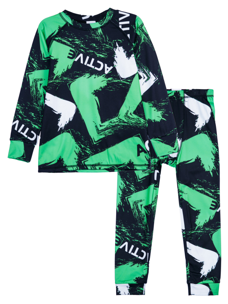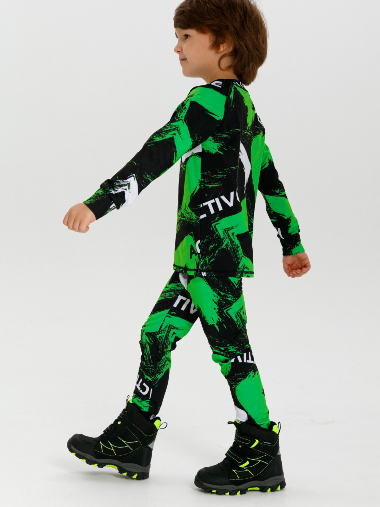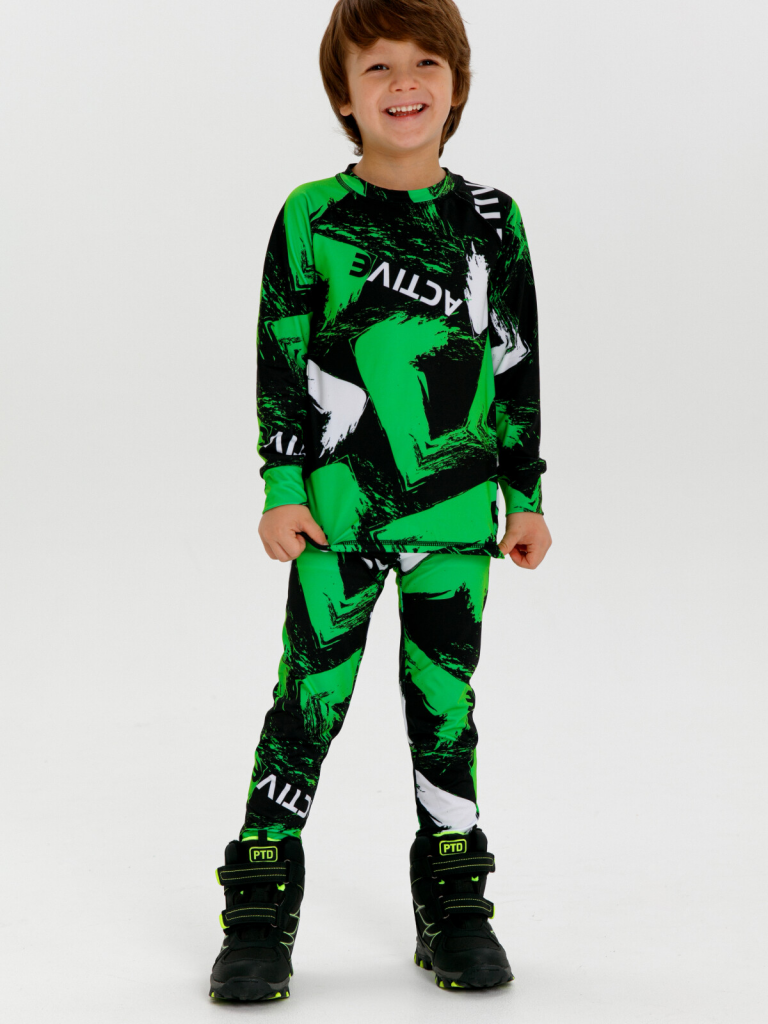 > Термокомплект трикотажный для мальчиков: брюки, толстовка для эпизодического использования черный,светло-зеленый,белый
