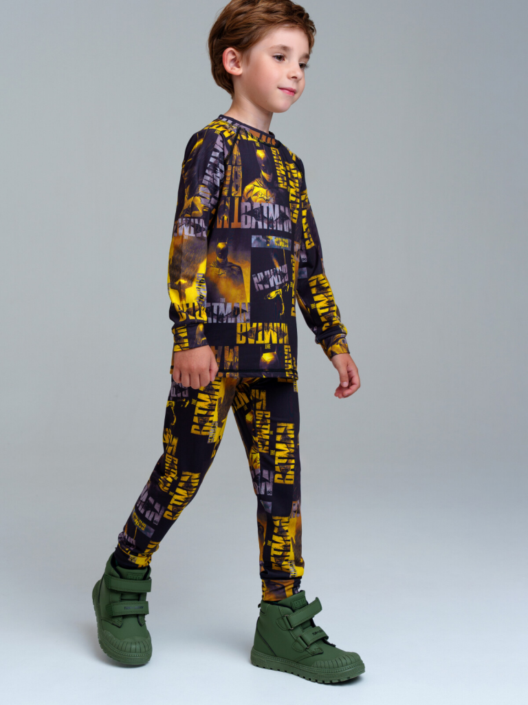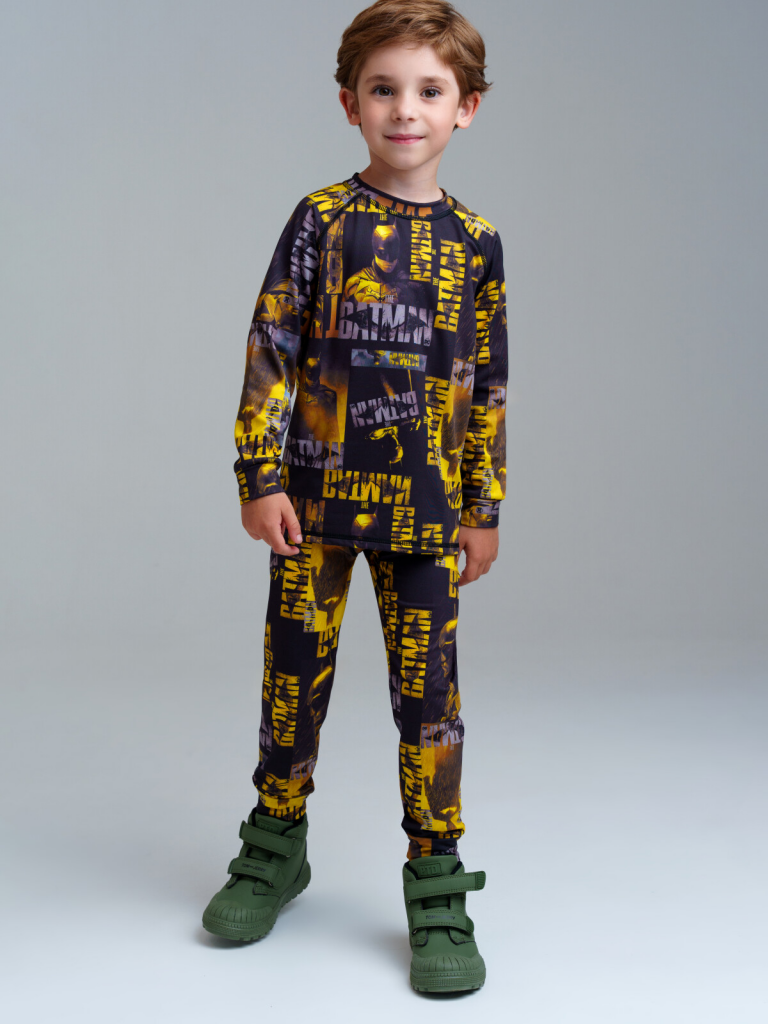 > Термокомплект трикотажный для мальчиков: брюки, толстовка для эпизодического использования черный,жёлтый