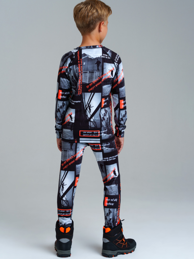 Термобелье линии NORD для мальчика подростка - это удобная и функциональная одежда для зимнего сезона, предназначенная для активного отдыха и спорта. Лонгслив и кальсоны (брюки) из термо материала с микроначесом идеально подходят под зимний мембранный костюм или комбинезон, в качестве базового первого слоя в трехслойной концепции одежды для зимы. Его основная функция отводить влагу от тела, всегда оставаясь сухим. Терморегуляция обеспечивается за счет сложного смесового состава нитей и их особого запатентованного плетения. Детское яркое термобелье отличается стильным дизайном и комфортным кроем, который не сковывает движений ребенка. К тому же, оно быстро сохнет и легко стирается, что делает его идеальным для повседневного использования в холодное время года.
