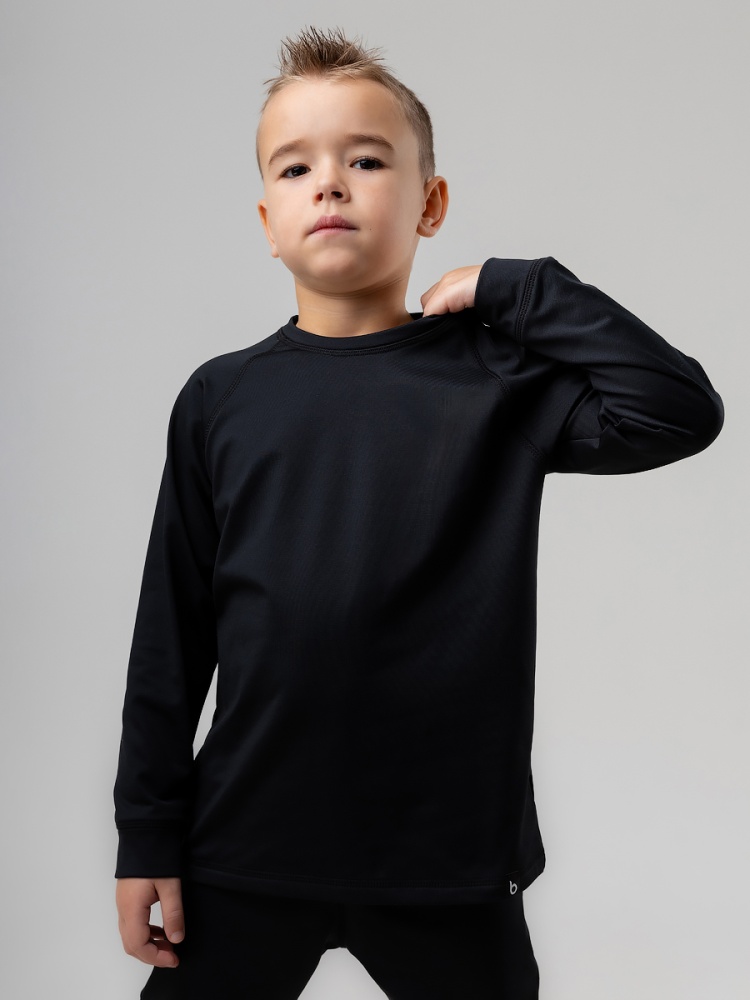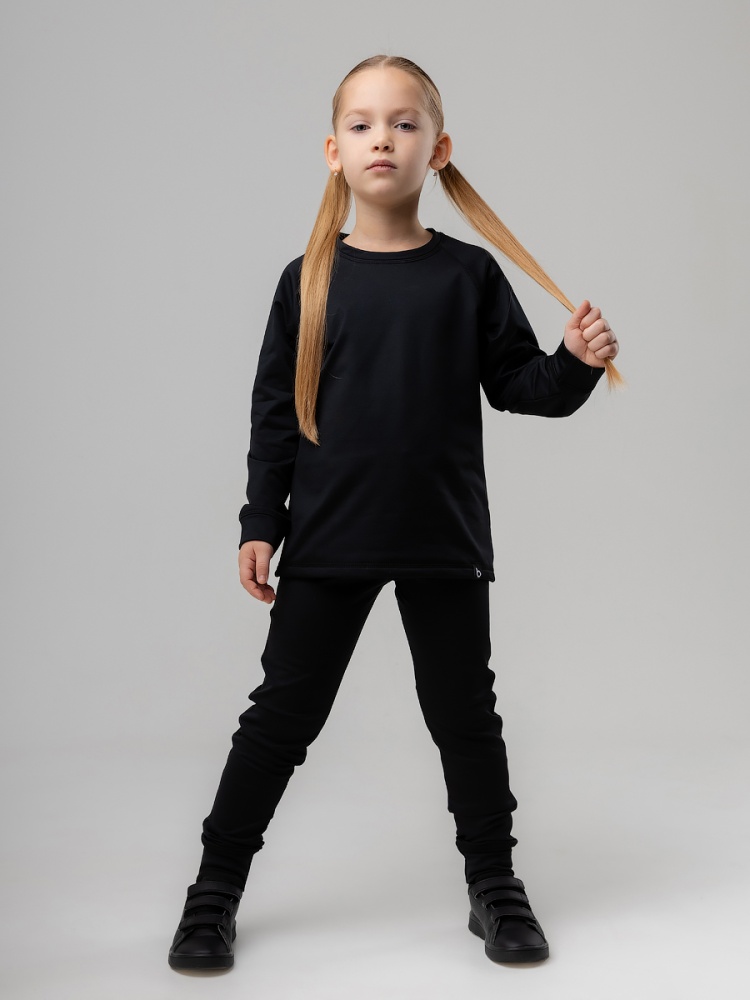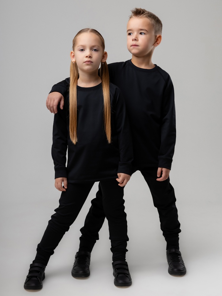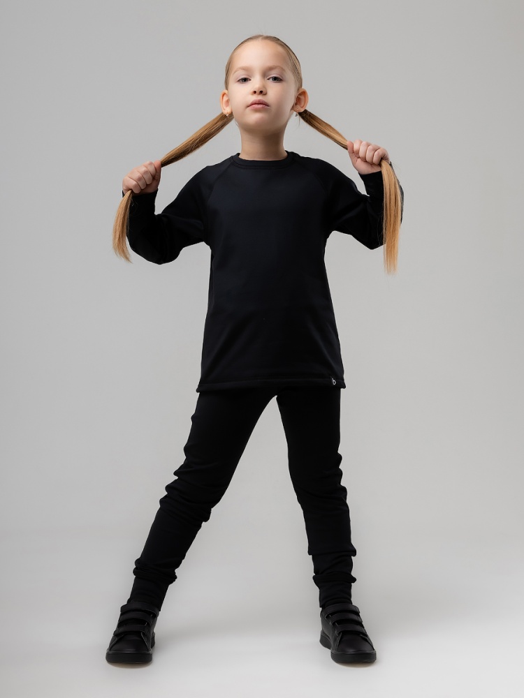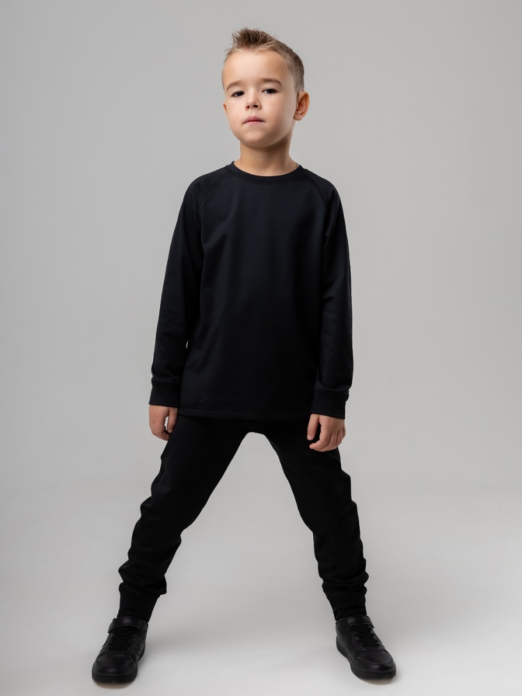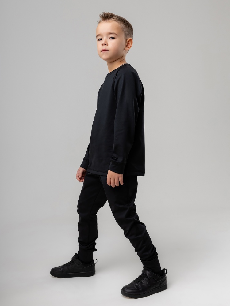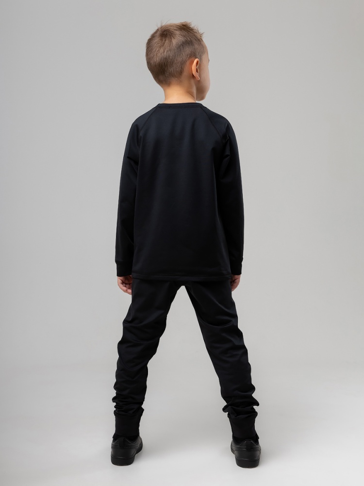Термокостюм детский. Свитшот: рукава на манжетах, полуприлегающий покрой. Брюки, детали: прилегающий покрой, пояс - эластичная резинка, зауженный низ, без застежек, без карманов. Состав: термобифлекс 100% полиэстер