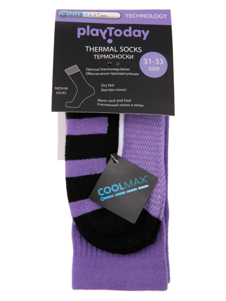 Термоноски с технологией Coolmax*. Оптимальная терморегуляция. Быстро сохнут. Утепленный носок и пятка. На ощупь мягкие, гладкие. Благодаря своей эластичности, максимально комфортно прилегает к телу. Не впитывают посторонние запахи. Предохраняет от переохлаждения. Прочный, долговечный материал, не вызывающий аллергии, выдерживает частые стирки. *Волокна Coolmax в сечении имеют необычную круглую форму и состоят из четырех каналов. Такая структура волокон позволяет отводить влагу с поверхности тела довольно быстро и сразу переносить ее на наружную поверхность ткани для дальнейшего испарения.