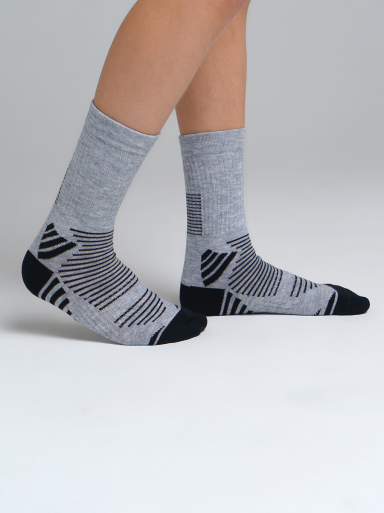Термоноски с шерстью мериноса для мальчика черный,серый