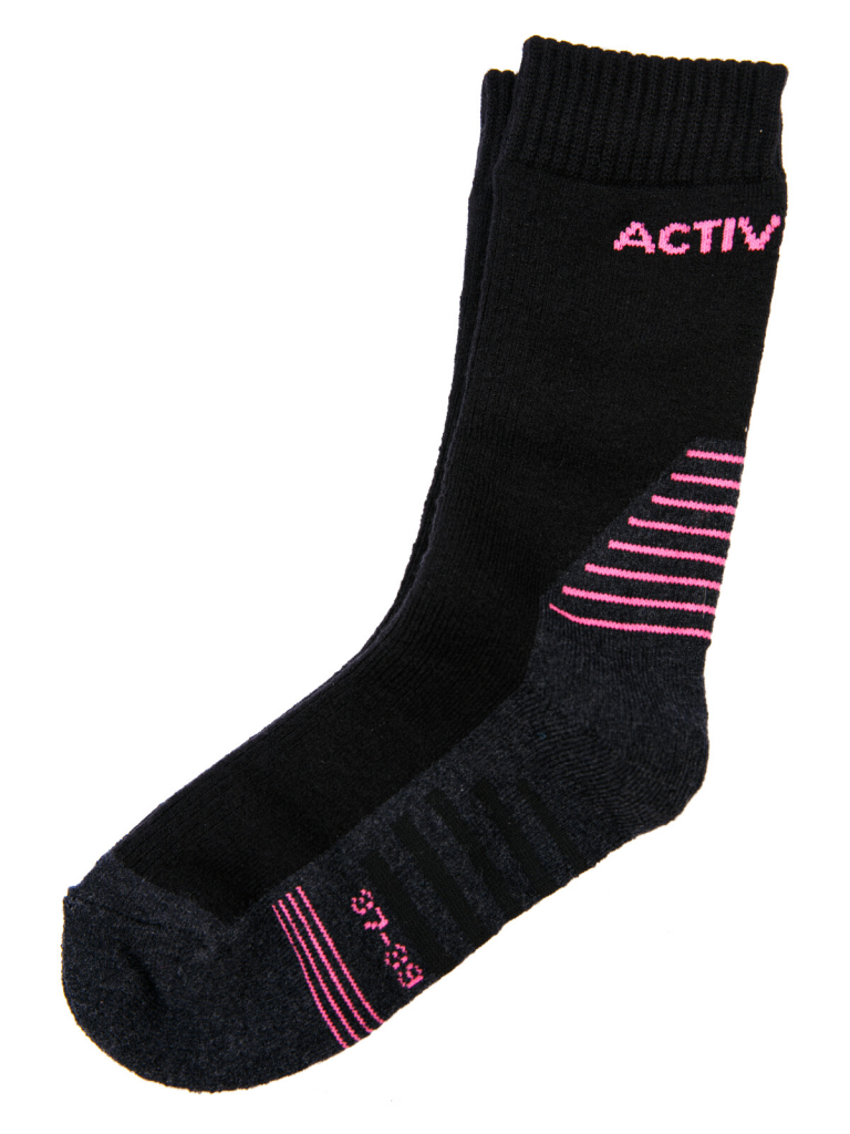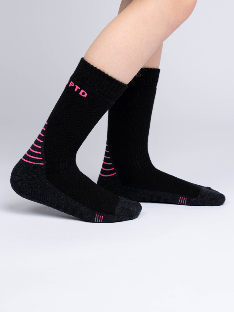Термоноски трикотажные для девочек (средние махровые) черный,фуксия
