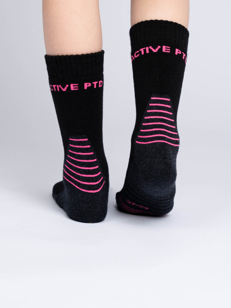 Термоноски линейки Merino wool. Рекомендуемый температурный режим до -35С. Терморегулирующее и дышащее волокно мериносовой шерсти сохраняет ноги сухими и теплыми. Обеспечивает оптимальный климат-контроль и защищает от холода. Материал эффективно отводит влагу наружу для температурного комфорта. Гипоаллергенное волокно.