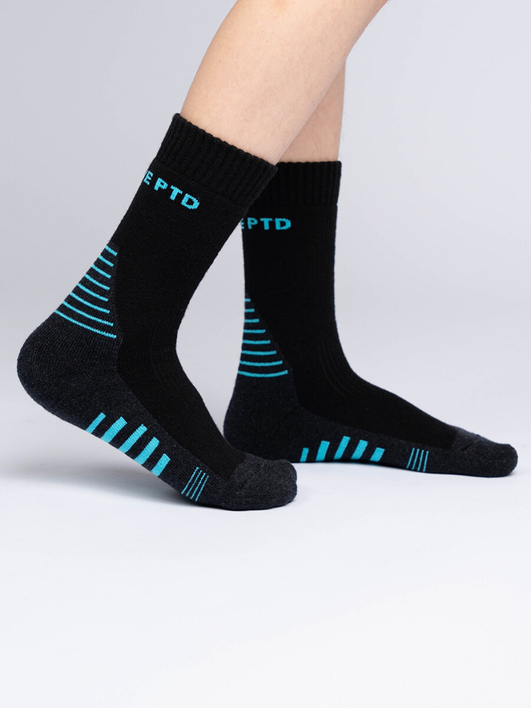 Термоноски линейки Merino wool. Рекомендуемый температурный режим до -35С. Терморегулирующее и дышащее волокно мериносовой шерсти сохраняет ноги сухими и теплыми. Обеспечивает оптимальный климат-контроль и защищает от холода. Материал эффективно отводит влагу наружу для температурного комфорта. Гипоаллергенное волокно.