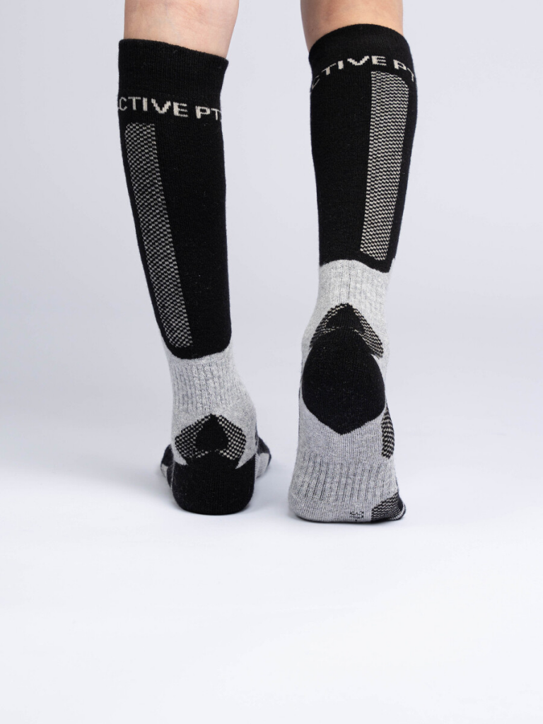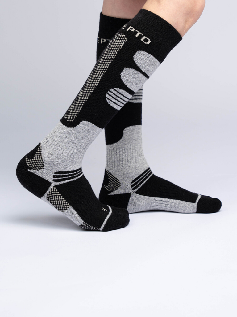 Термоноски линейки Merino wool. Рекомендуемый температурный режим до -35С. Терморегулирующее и дышащее волокно мериносовой шерсти сохраняет ноги сухими и теплыми. Обеспечивает оптимальный климат-контроль и защищает от холода. Материал эффективно отводит влагу наружу для температурного комфорта. Гипоаллергенное волокно.