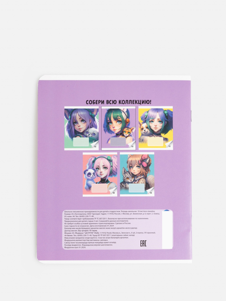 Тетрадь, 18л, линейка с полями, на скрепке Panch разноцветный