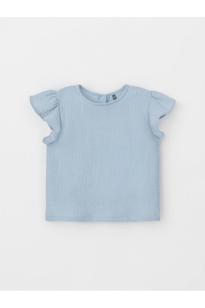 Укороченный топ для девочки из мягкого хлопокового муслина. По спинке застежка на кнопки. Изделие сохраняет цвет, форму и фактуру жатости после многократных стирок.