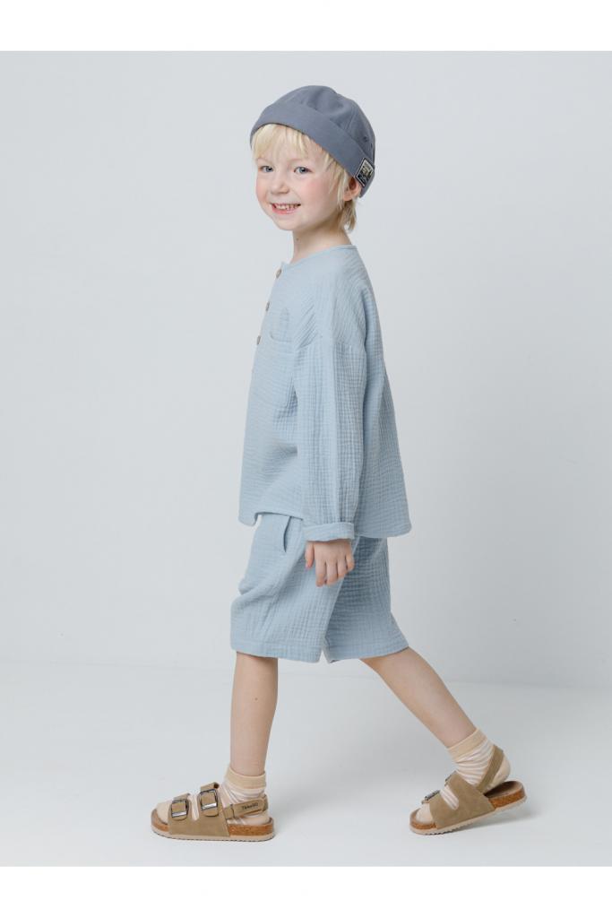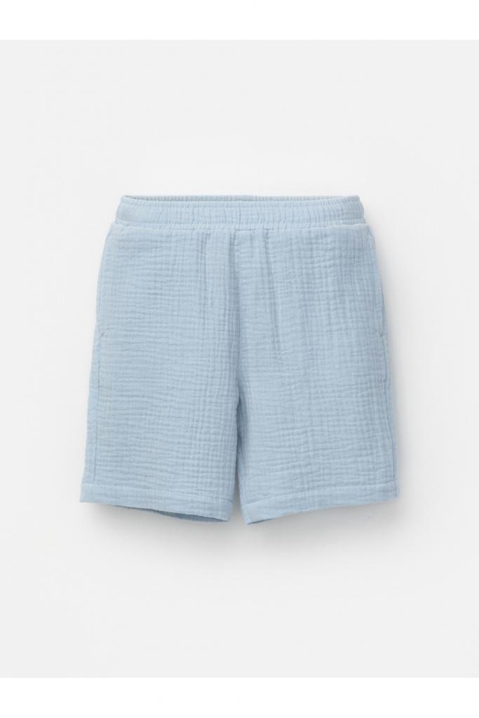 Легкие детские шорты с карманами из мягкого хлопкового муслина. Изделие сохраняет цвет, форму и фактуру жатости после многократных стирок.
