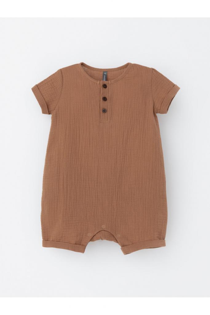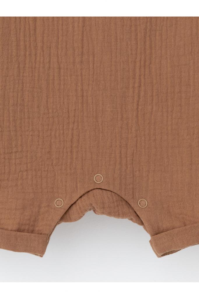 Легкий песочник для мальчика из мягкого хлопокового муслина с застежкой на пуговицы. Изделие сохраняет цвет, форму и фактуру жатости после многократных стирок.